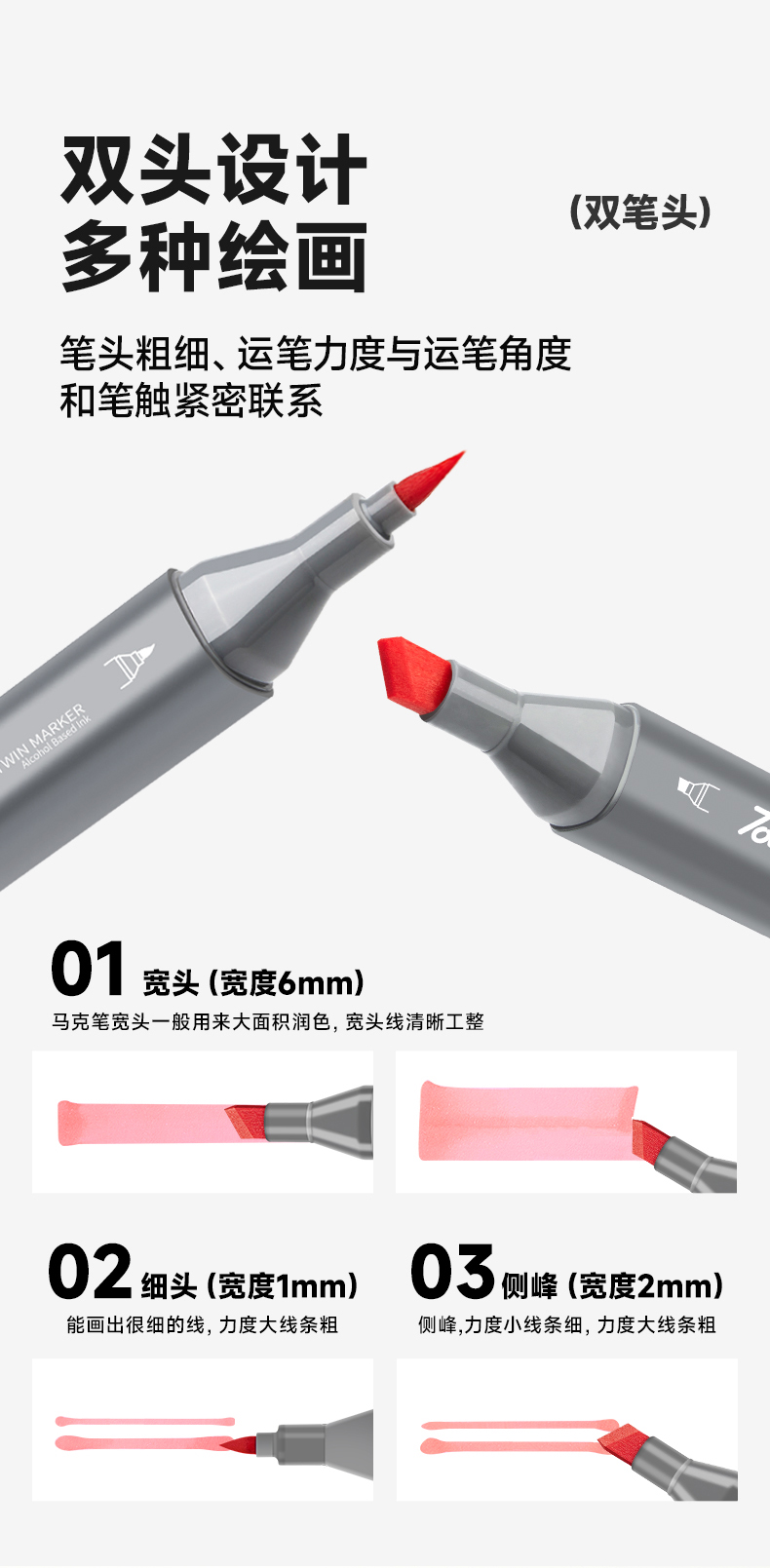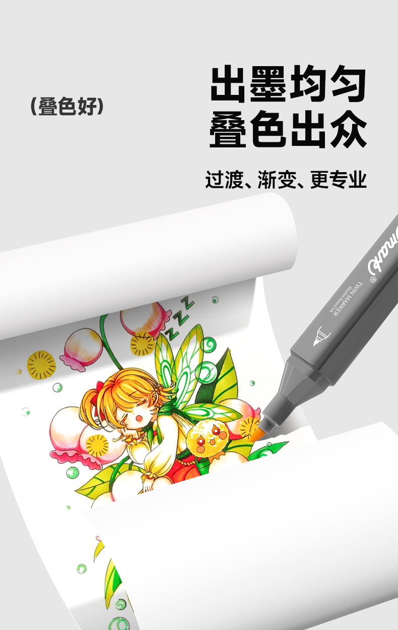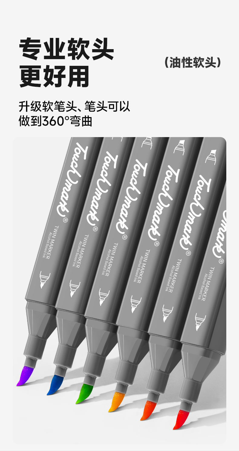 Touchmark泰驰马克-T5s油性软头马克笔小学生专用速干双头绘画笔