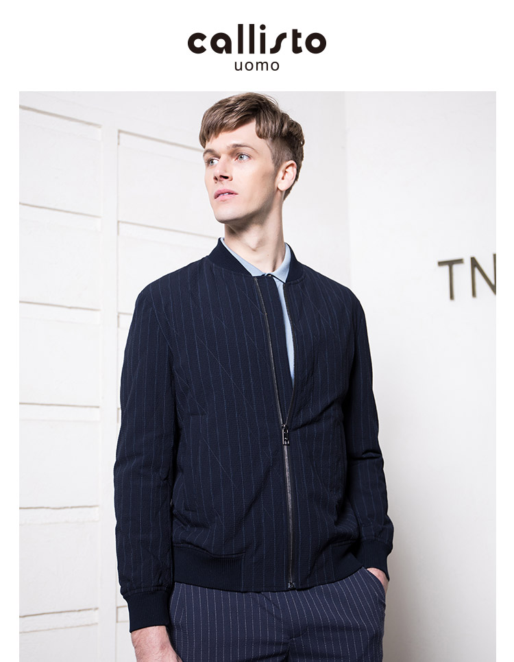 callisto藏青条纹棒球领针织夹克 SQFEJ003C