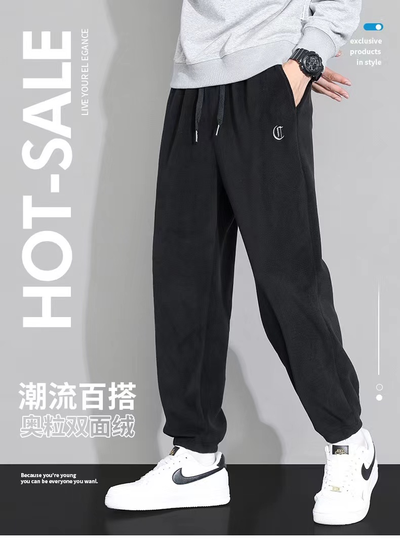 秋冬奥粒双面绒加绒加厚保暖潮流百搭2款可选长裤男款