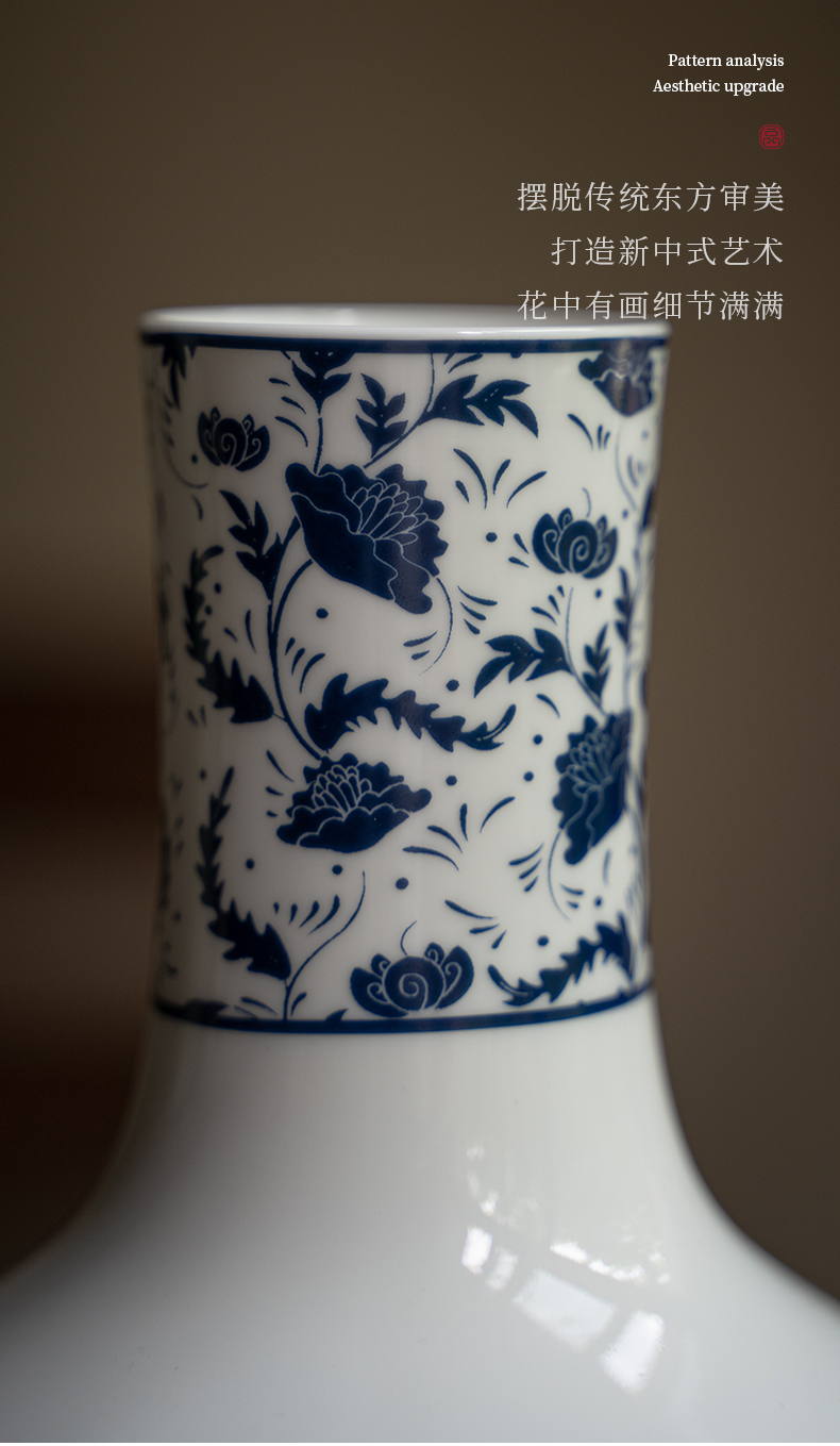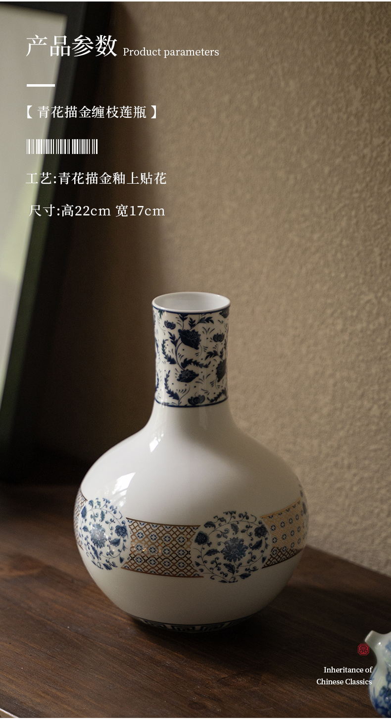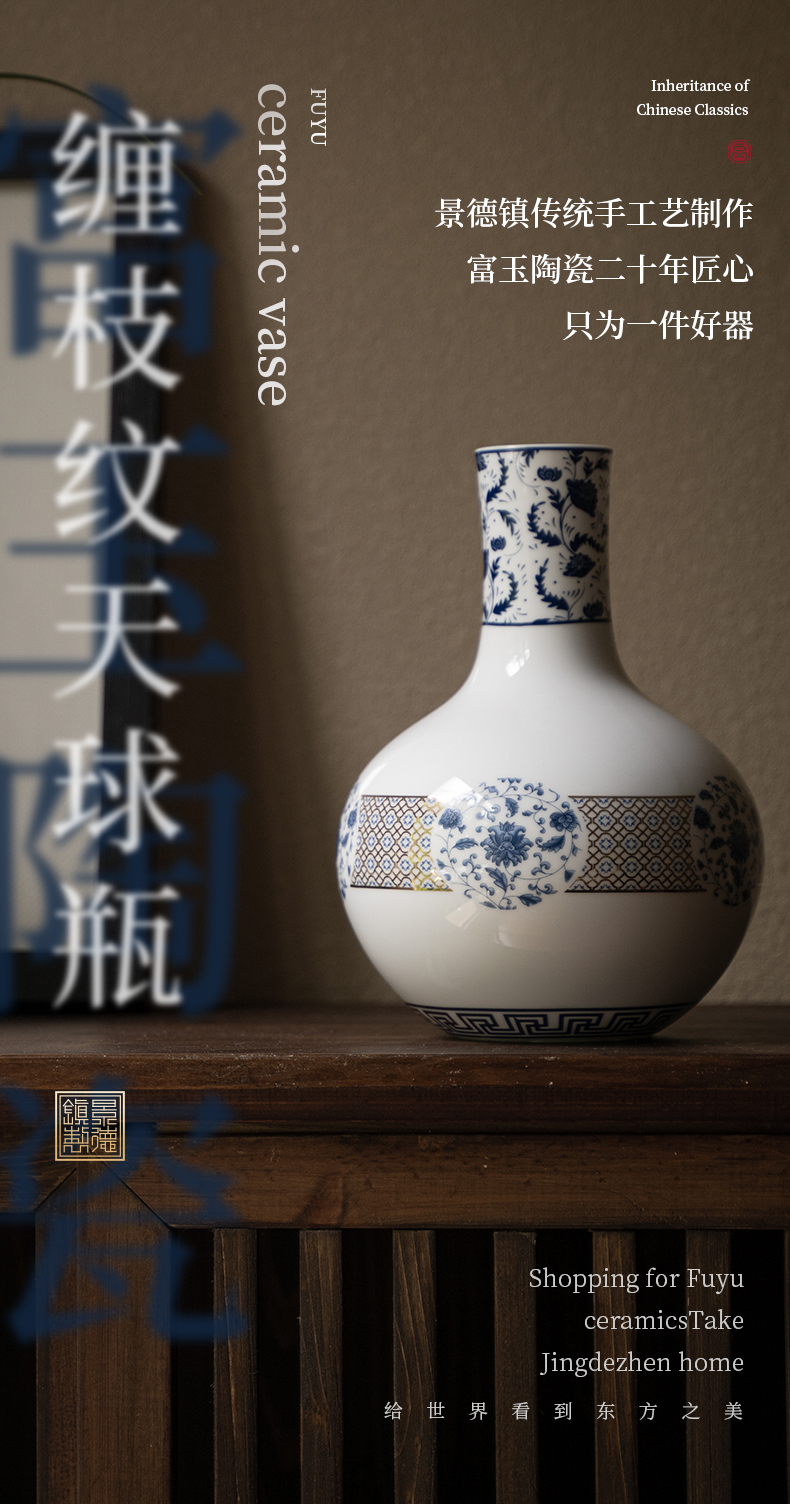 富玉 花瓶卧室陶瓷器中式居家装饰品花瓶-缠枝天球瓶