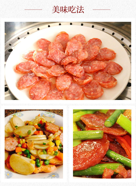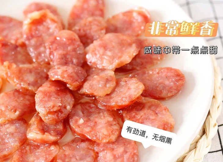 另加农家酿的50度高粱酒,物理杀菌没有化学添加,掰开能得见肉粒,清蒸都很好吃,如果你之前吃的,是很干的那种香肠,可以试试我做的土香肠