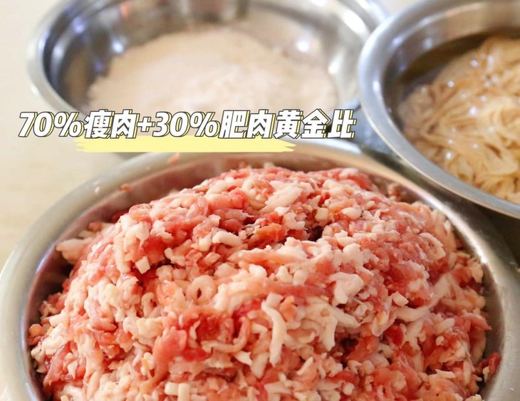 土猪肉是自家猪场养的,都是取的新鲜后腿肉,夹心肉再加脊梁的肥肉,没有淀粉,纯肉做的