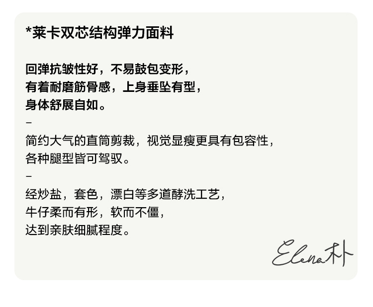 03/04 Elena朴|春季百搭款 莱卡双芯结构弹力直筒牛仔裤