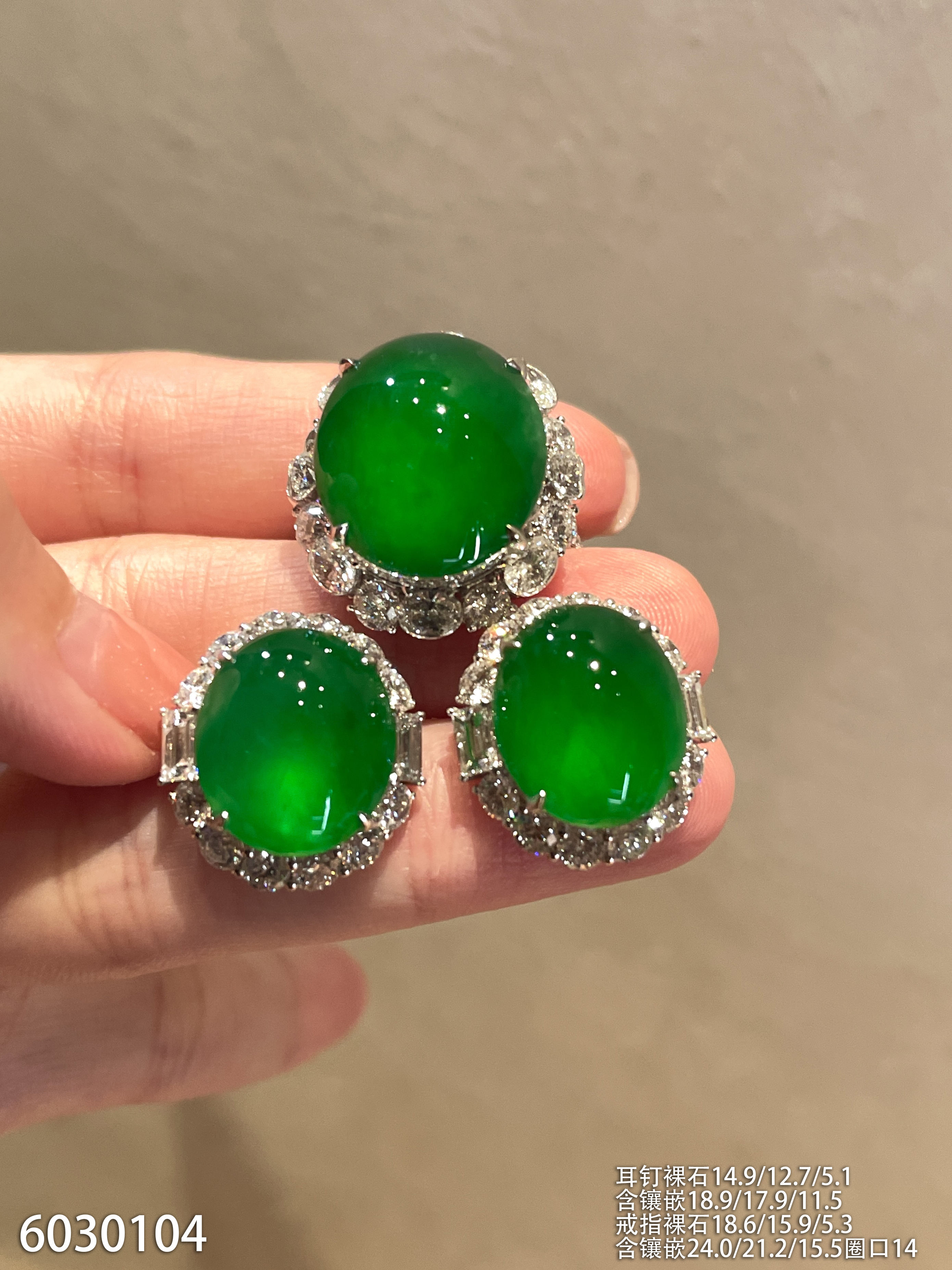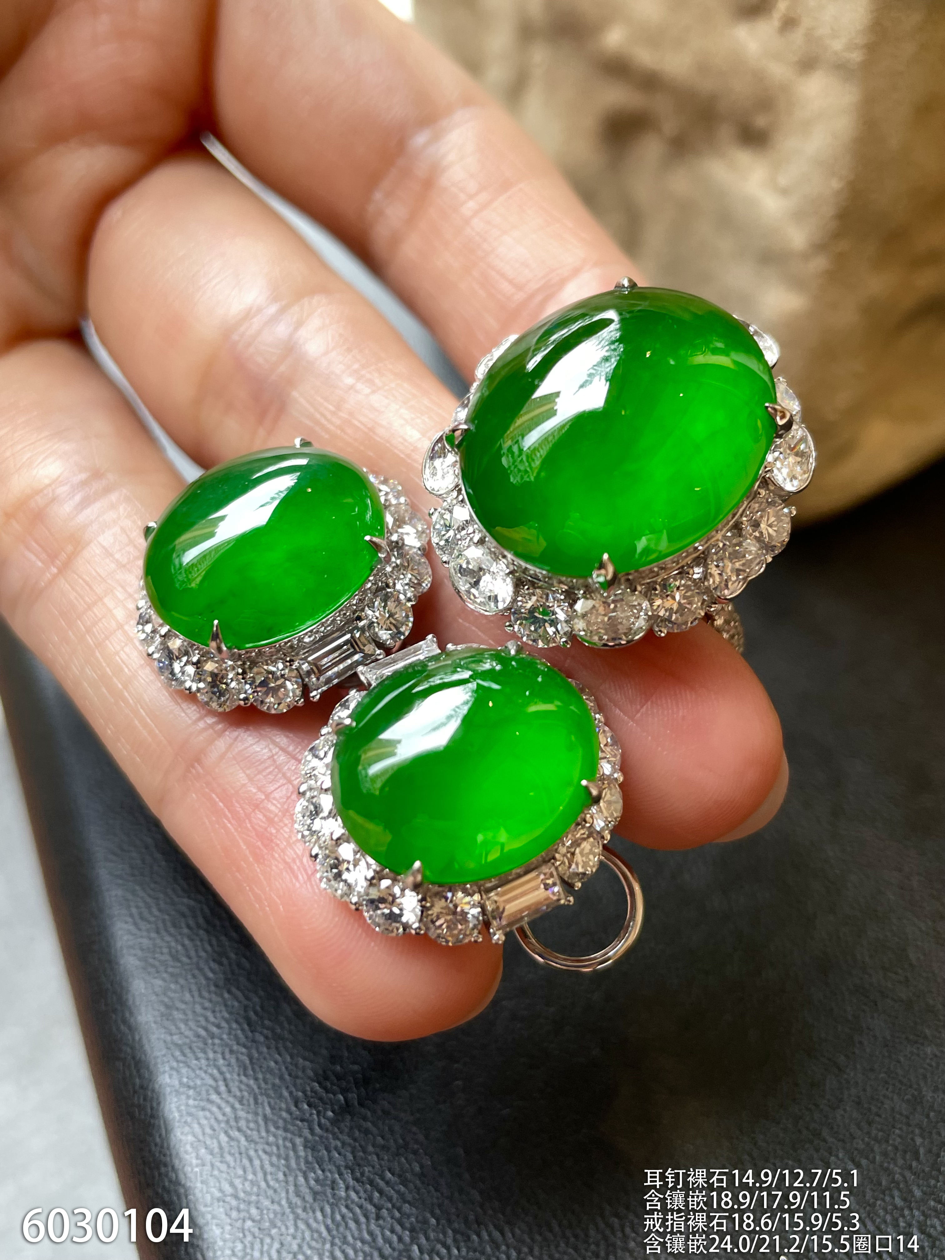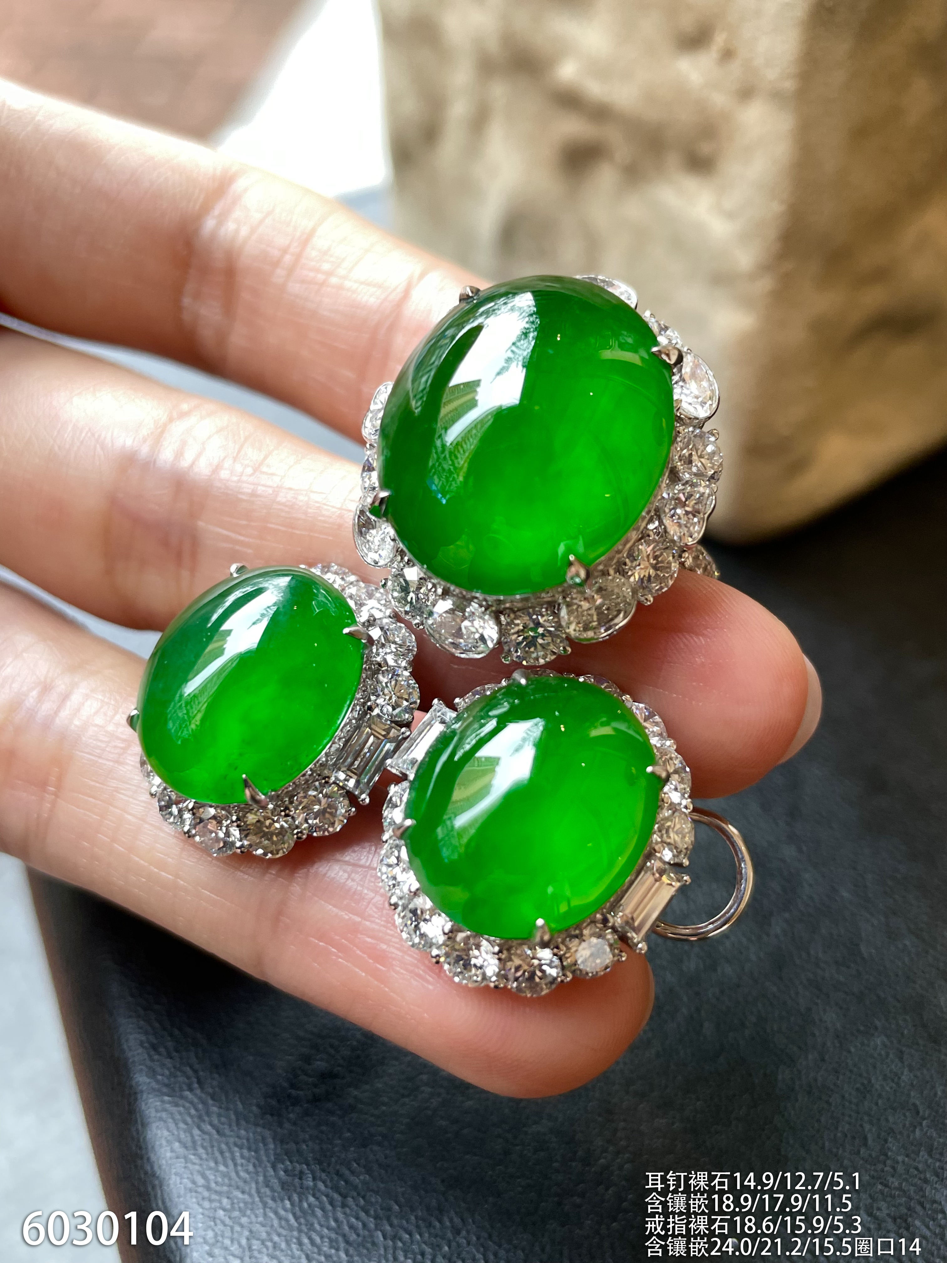 玻璃种帝王绿蛋面套装【6030104】具体价格微信咨询