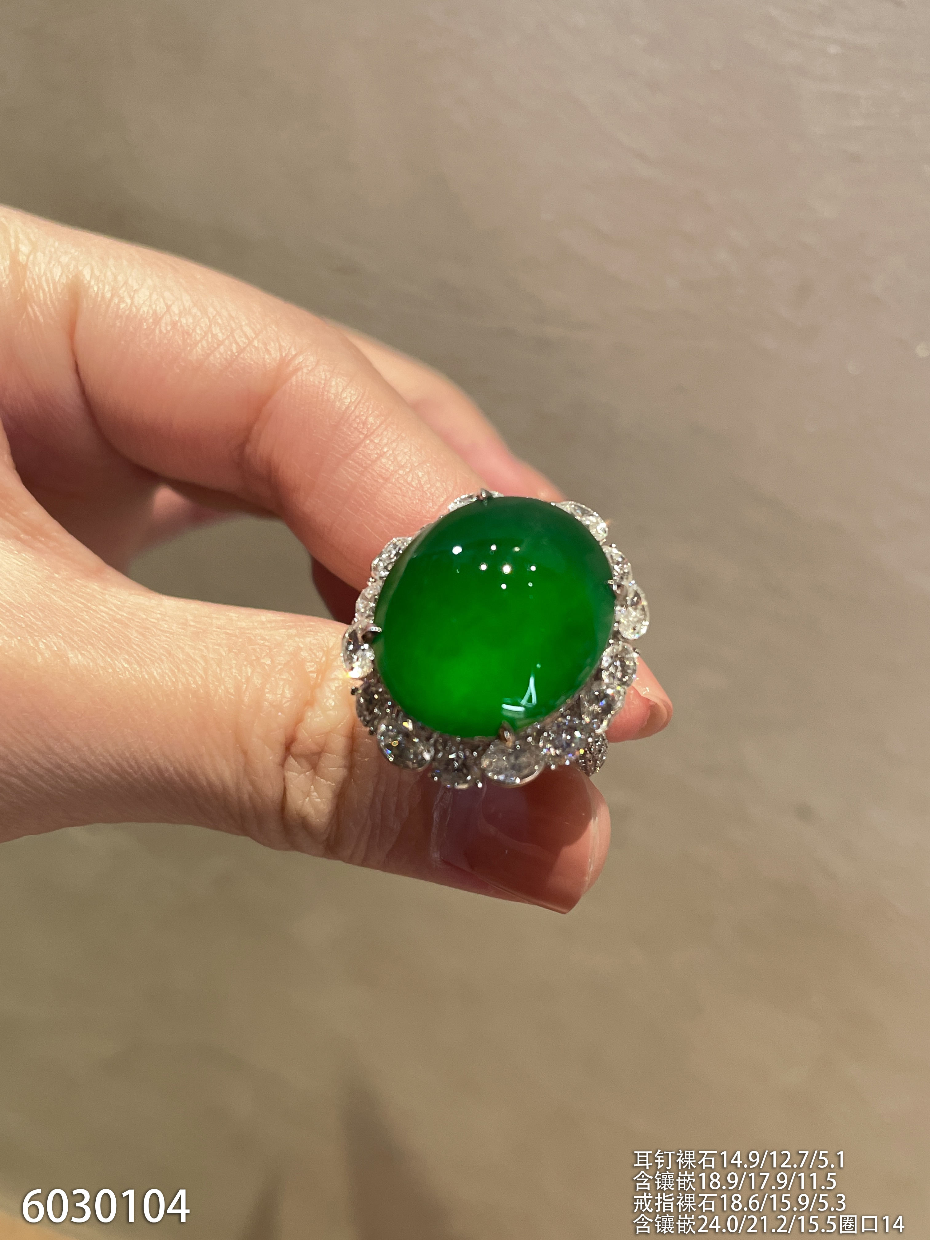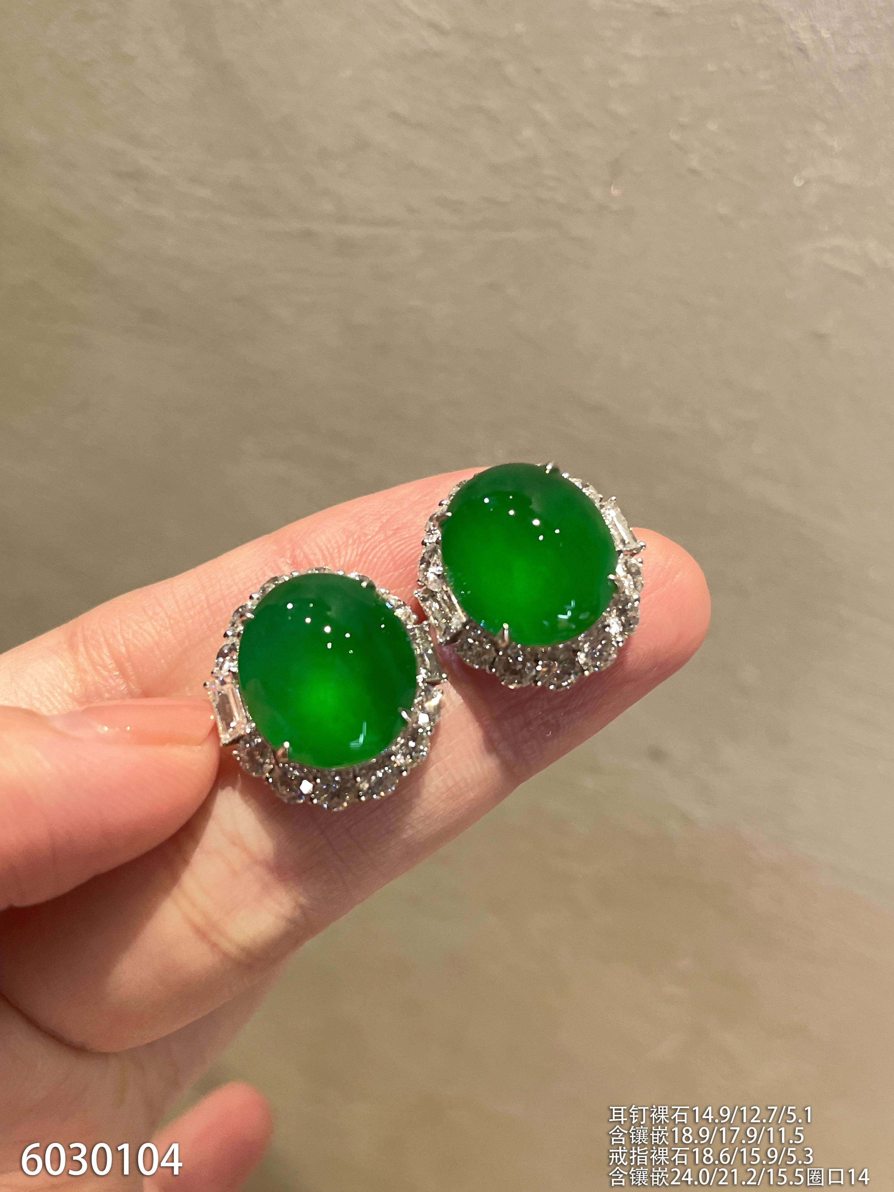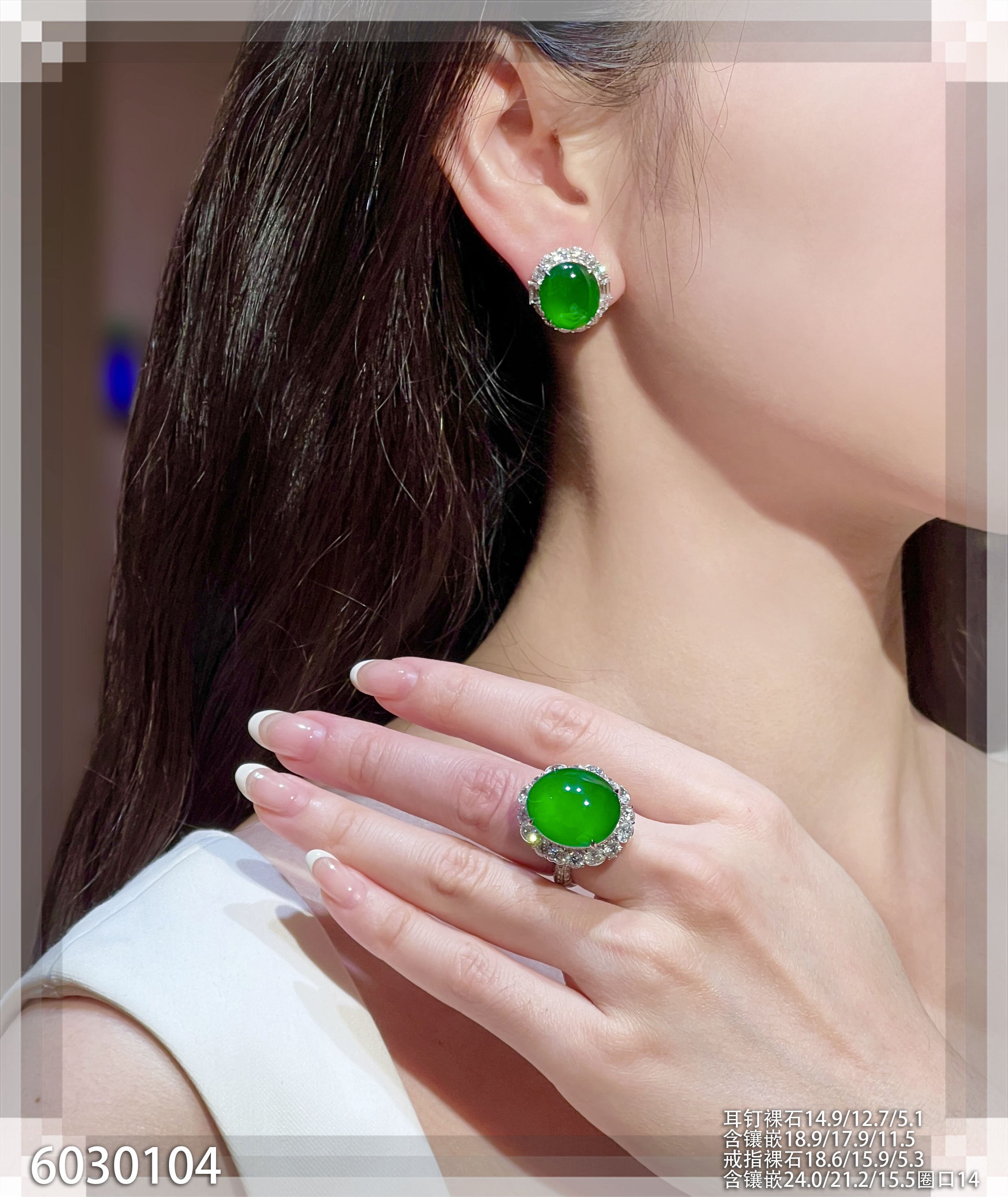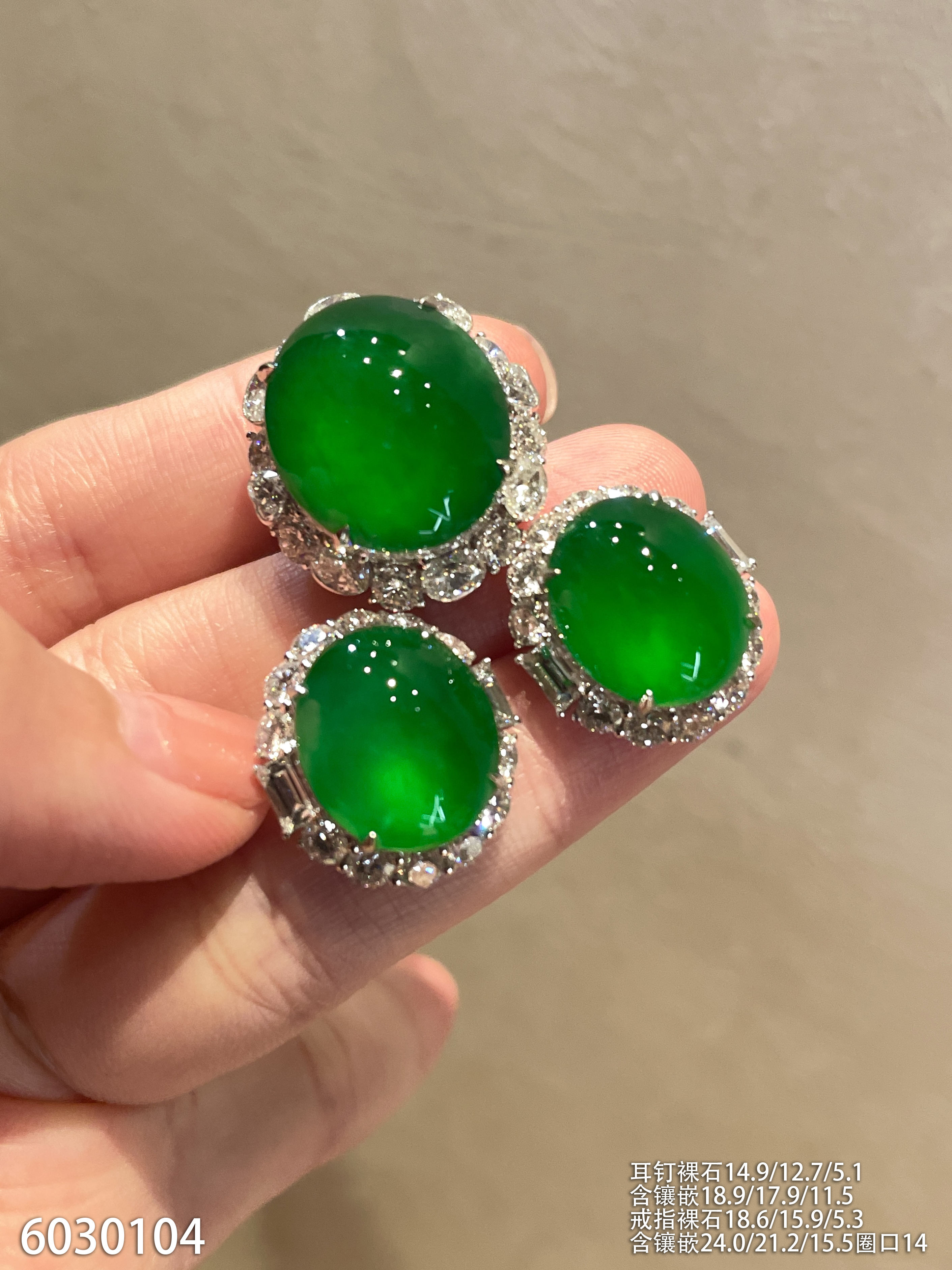 玻璃种帝王绿蛋面套装【6030104】具体价格微信咨询