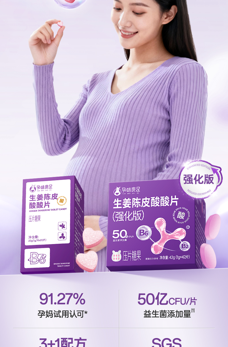 【品牌直发】孕味食足孕味酸酸片孕吐神器缓解止维生素糖孕早期反胃酸孕妇零食
