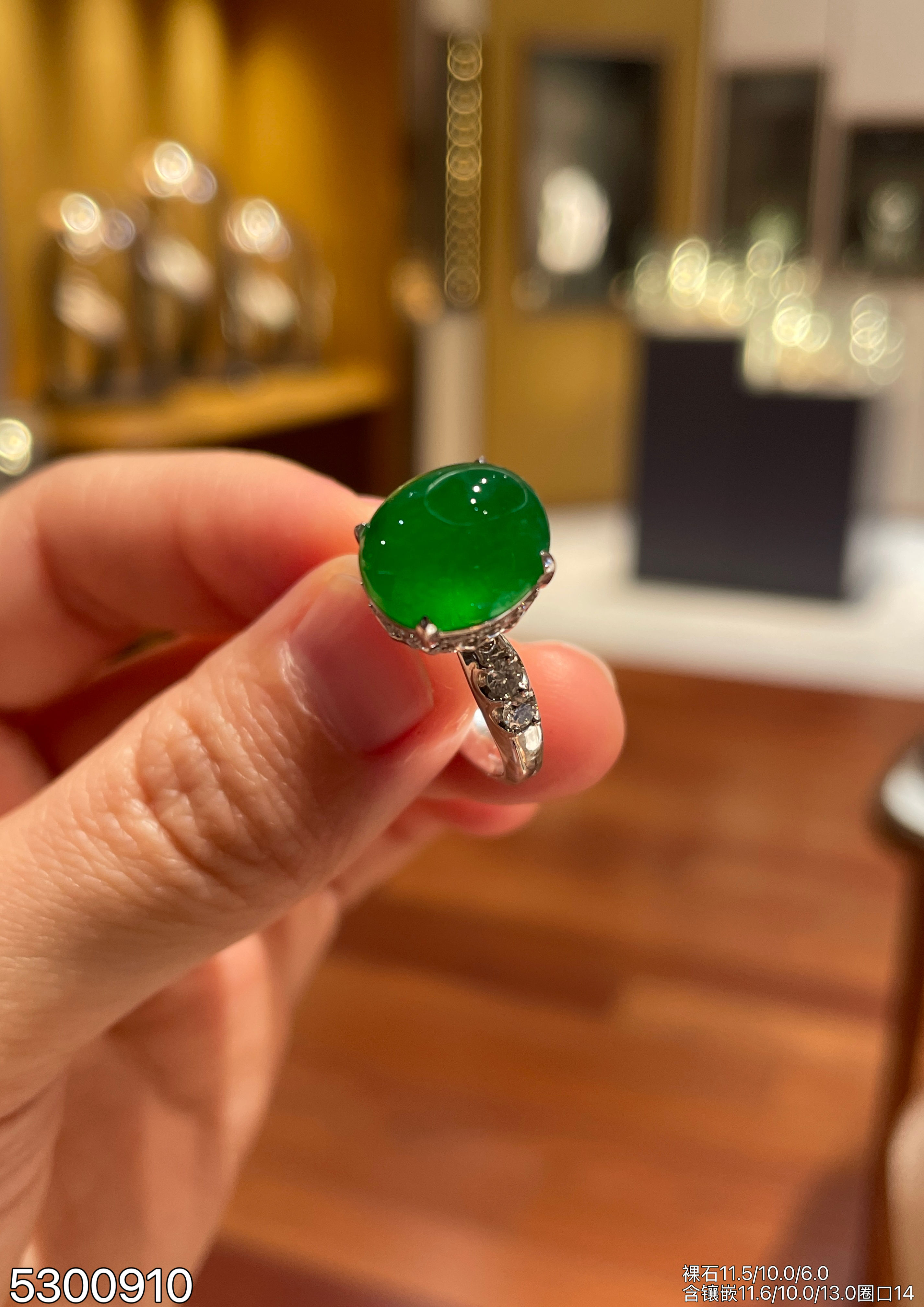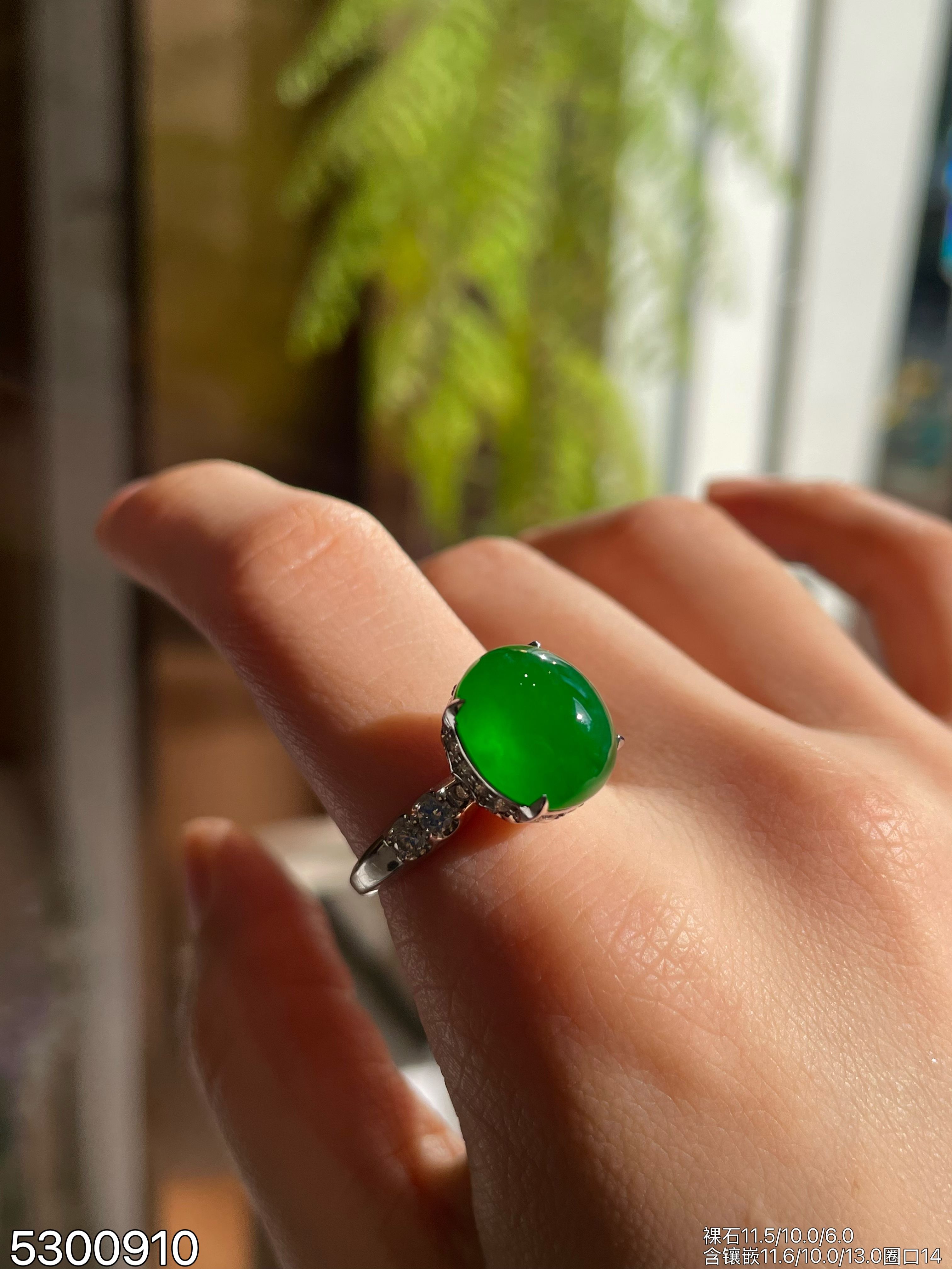 老坑帝王绿蛋面戒指【5300910】具体价格微信咨询