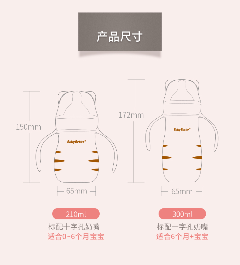 宝升Babybetter婴儿奶瓶PPSU抗菌防胀气奶瓶虎纹210mL/300ML2瓶JPY带授权招加盟代理