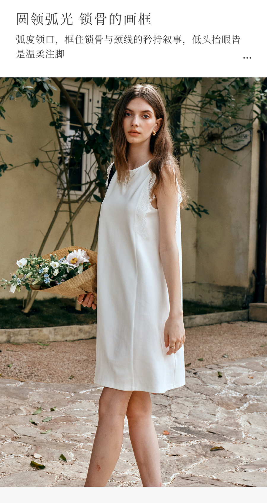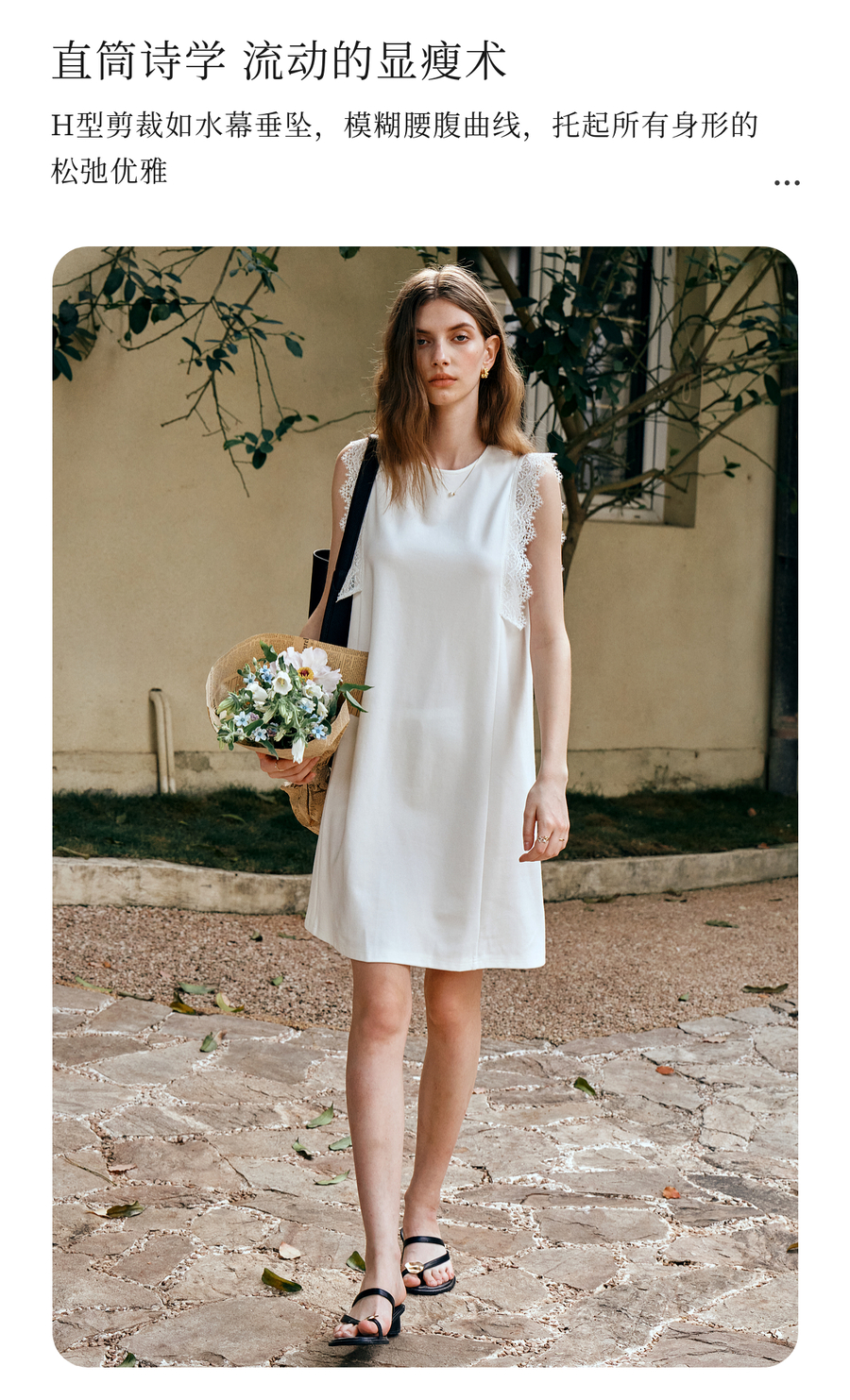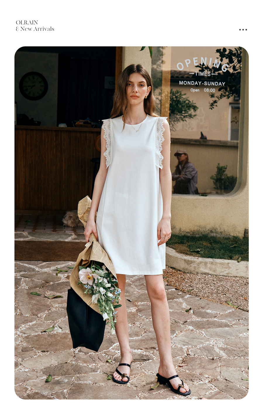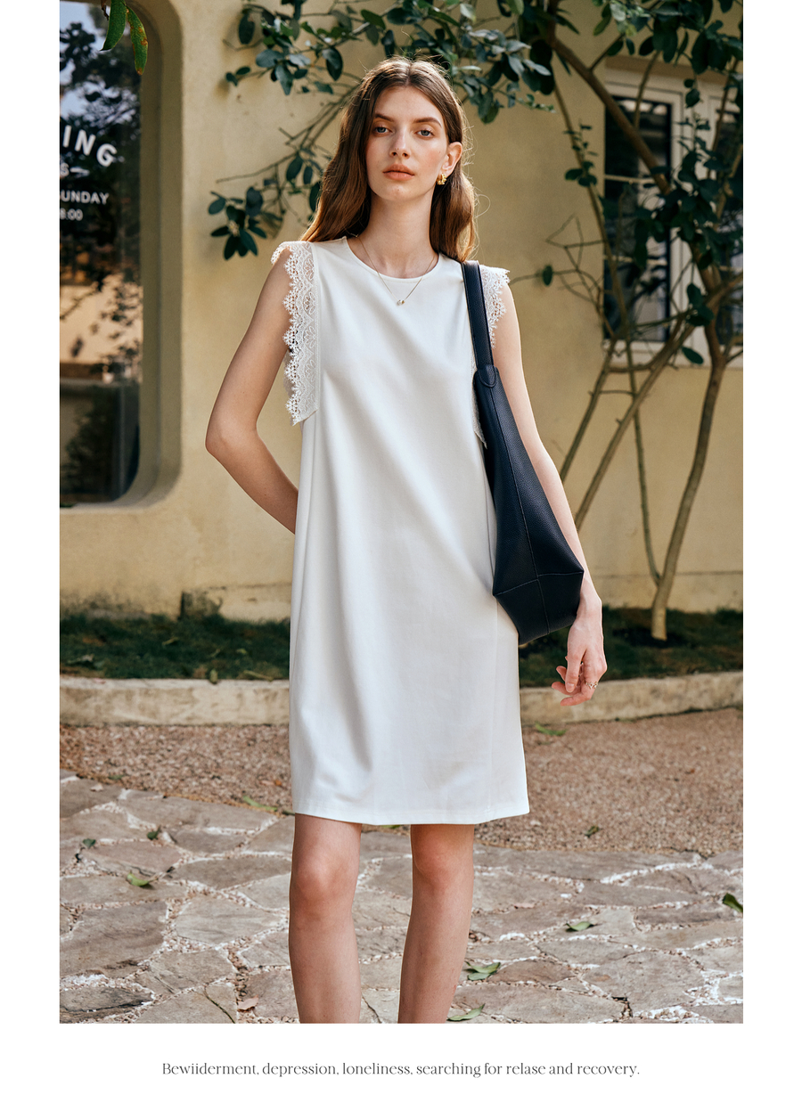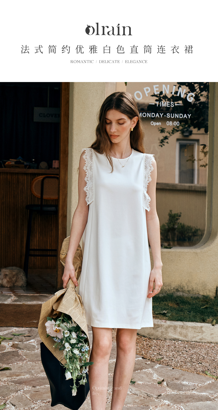 OLrain欧芮儿法式简约优雅白色直筒连衣裙女夏季2025新款中长裙子