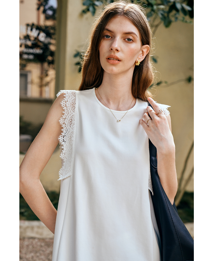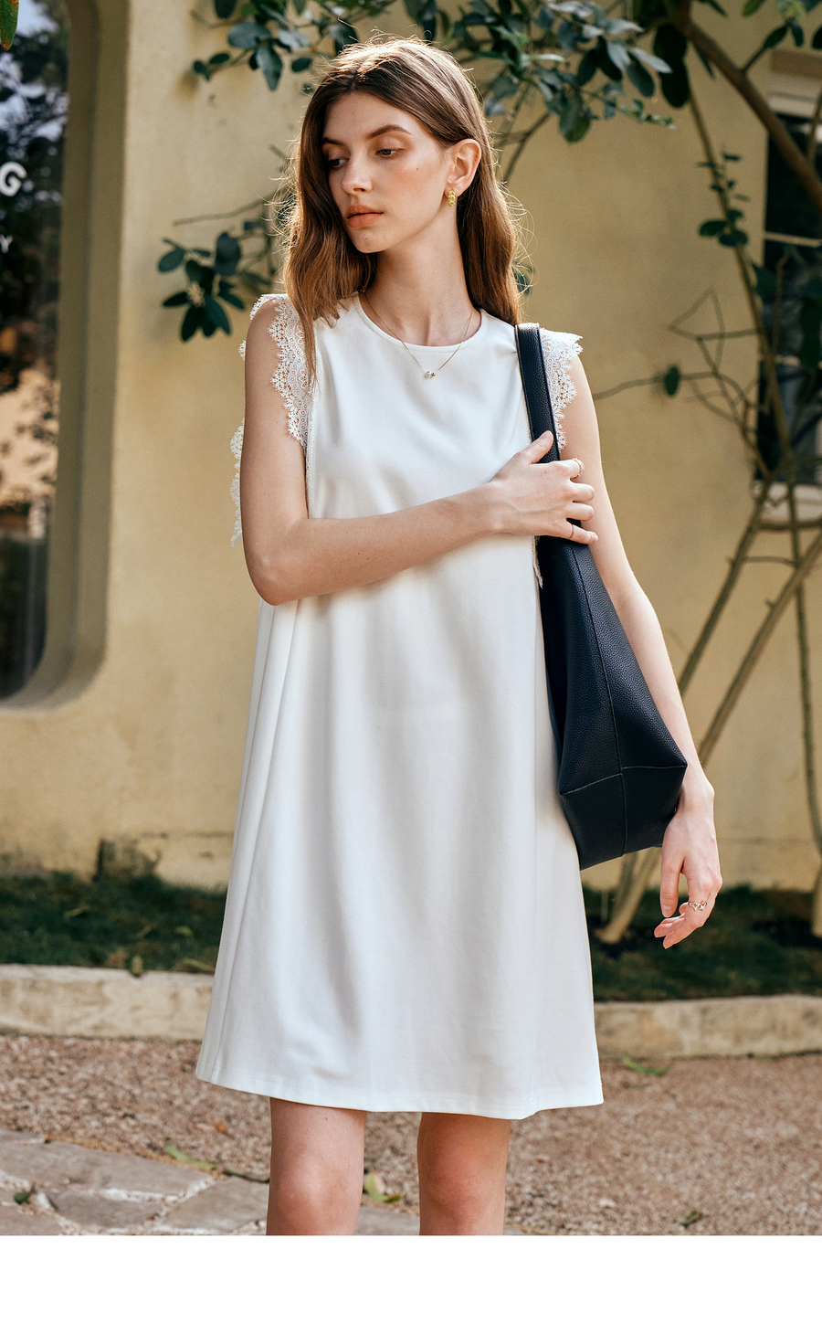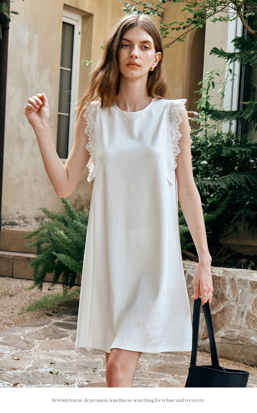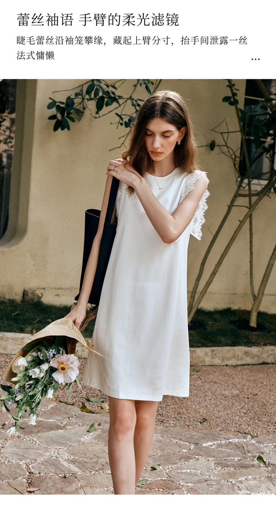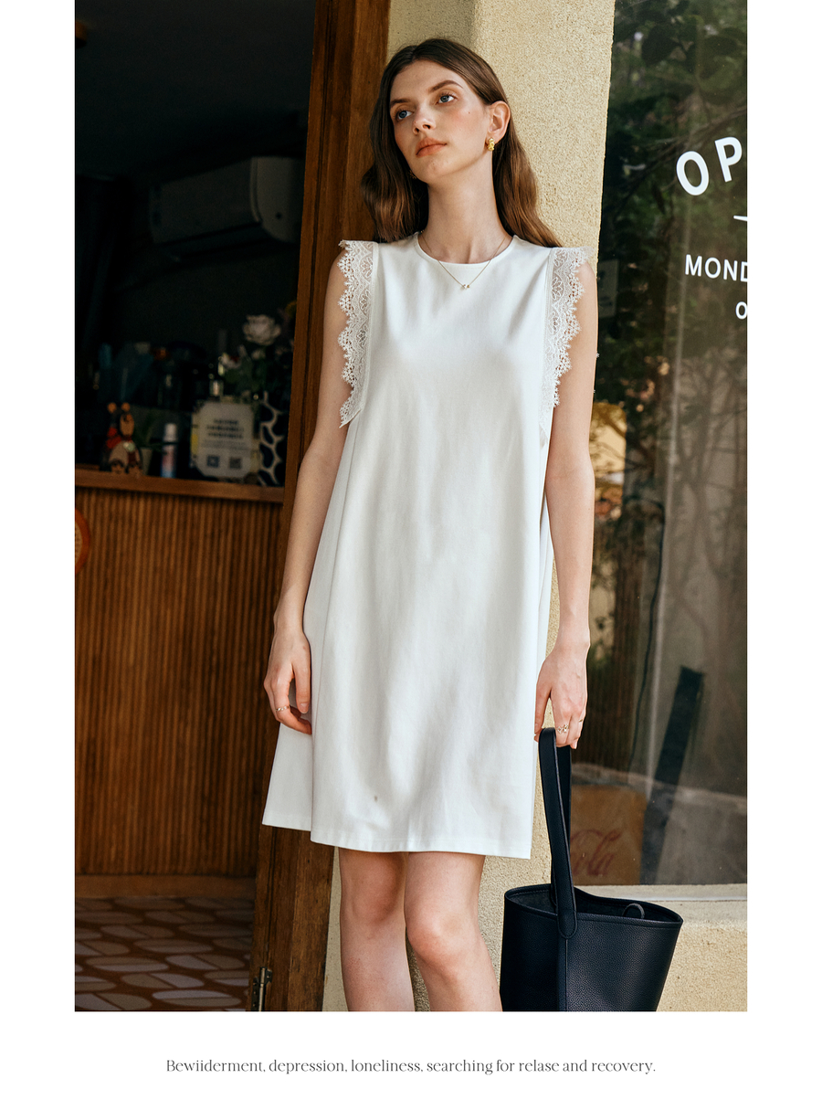 OLrain欧芮儿法式简约优雅白色直筒连衣裙女夏季2025新款中长裙子