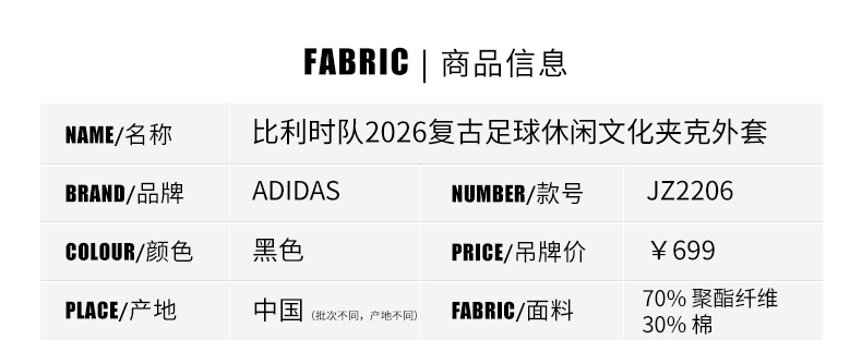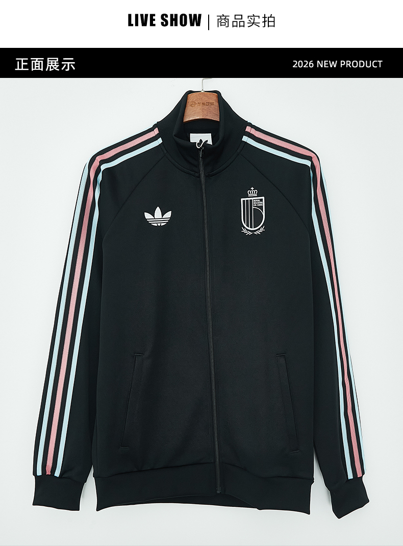 SFS正品 Adidas阿迪达斯2026世界杯比利时队复古足球休闲文化夹克外套JZ2206