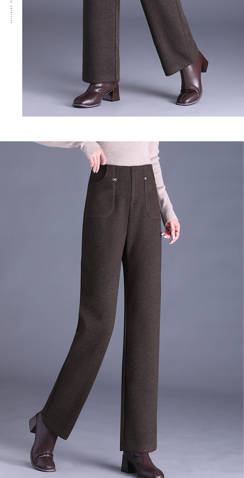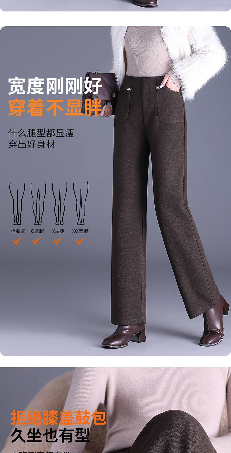 休闲直筒裤女春秋季新款大码宽松显瘦长裤羊绒毛呢裤子窄版阔腿裤