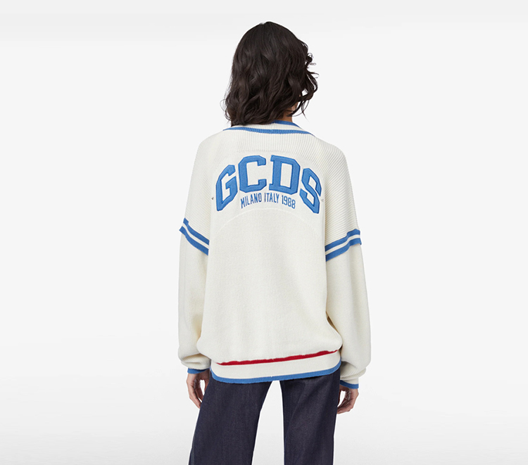 GCDS 女士字母徽标刺绣棉质针织开衫 白色 A1CU1804KB115