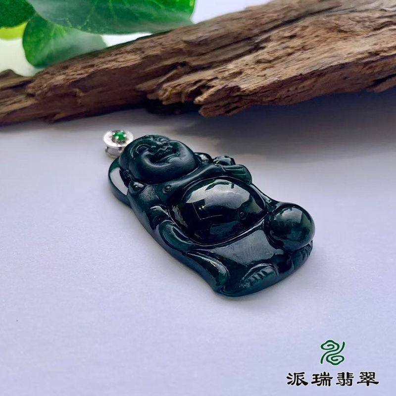 派瑞翡翠 翡翠佛 糯种 墨翠