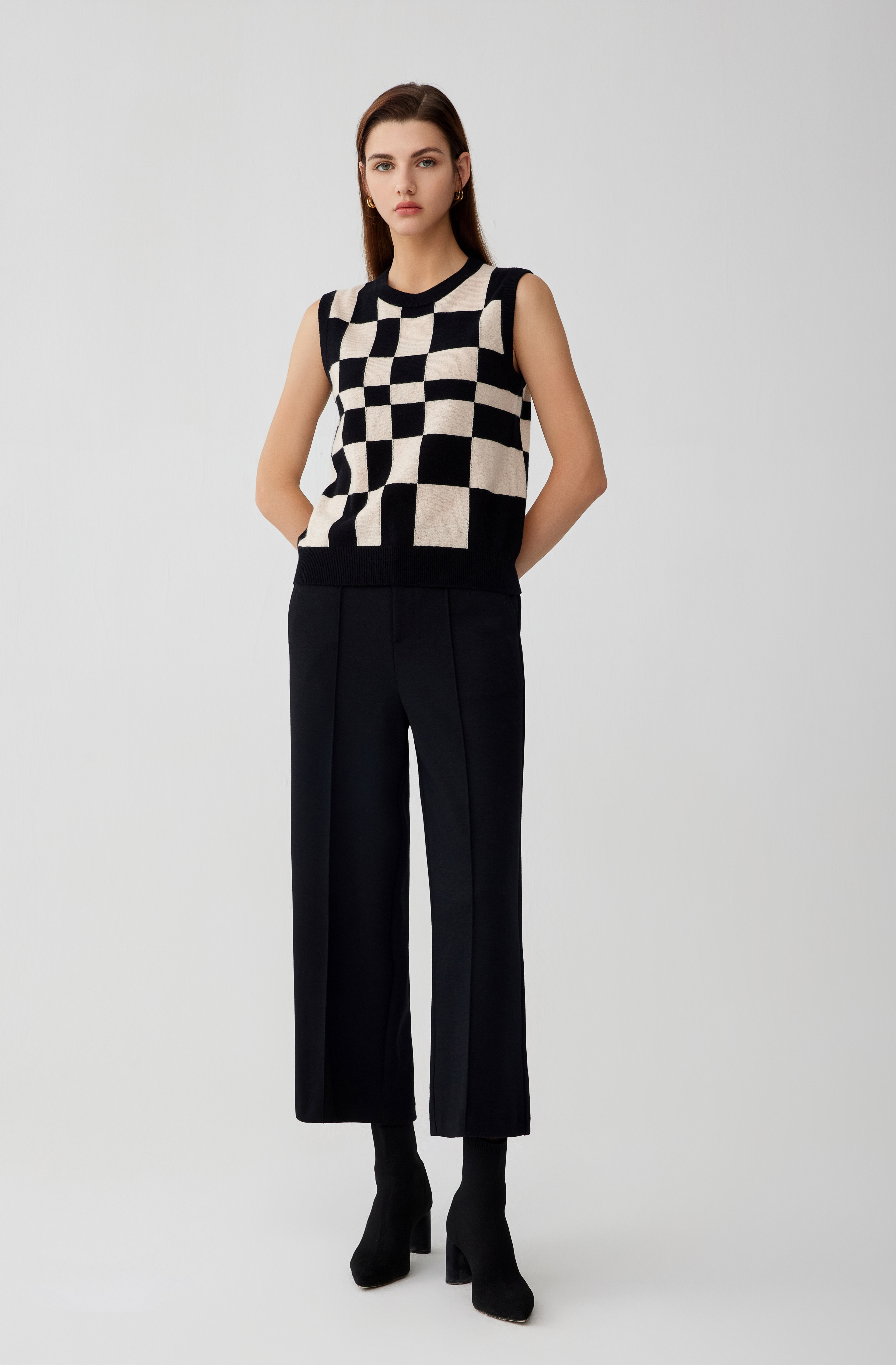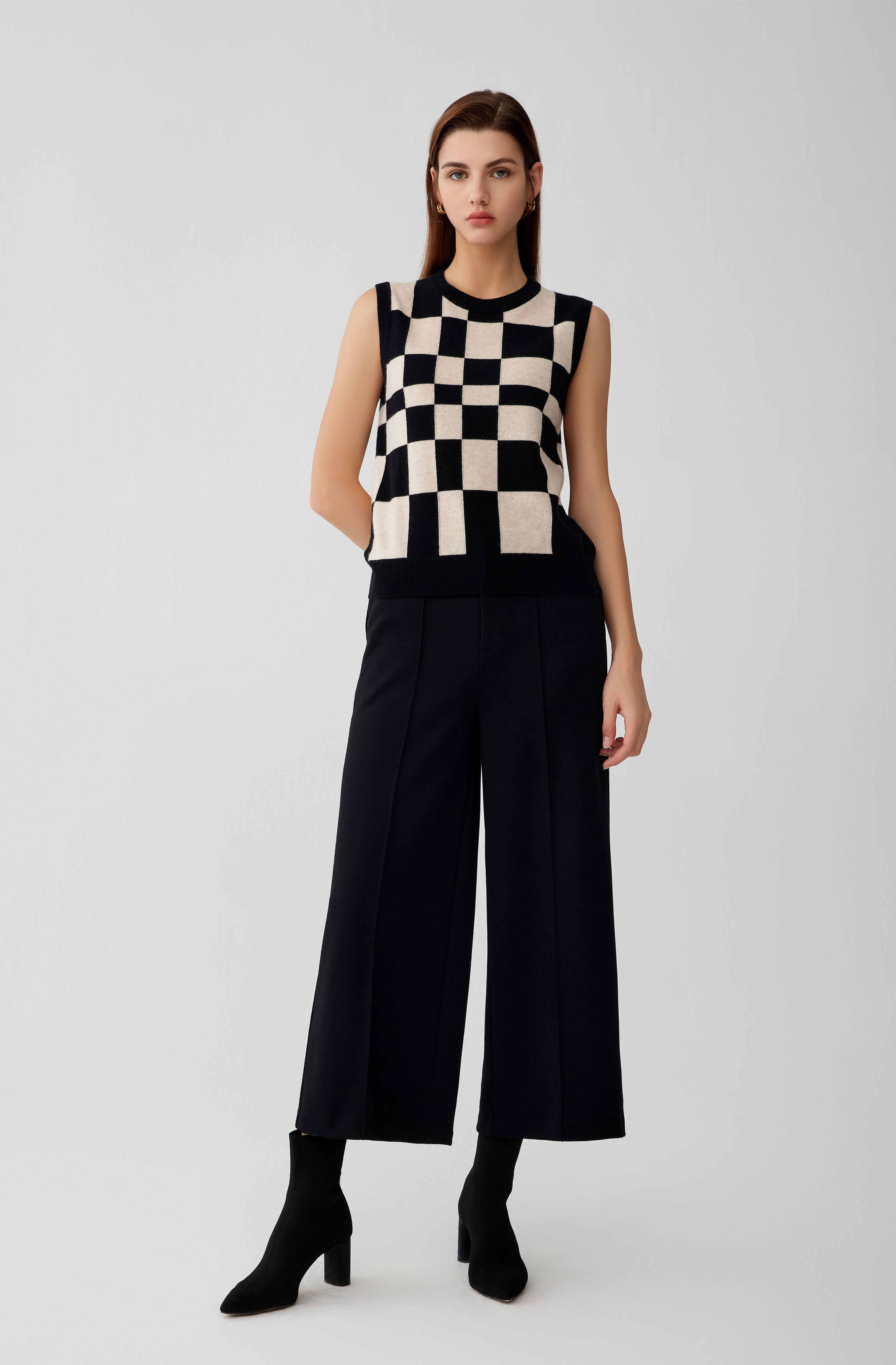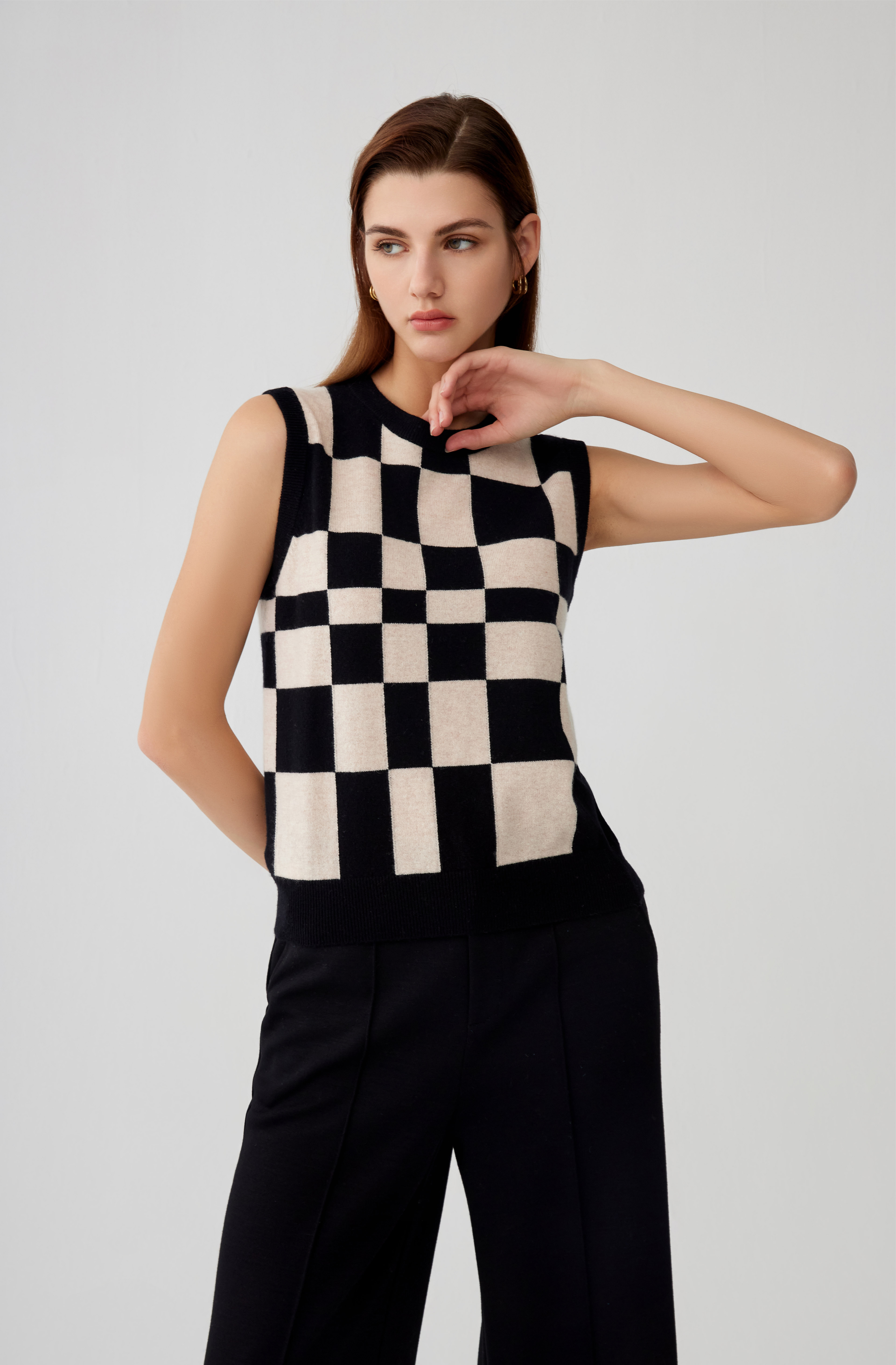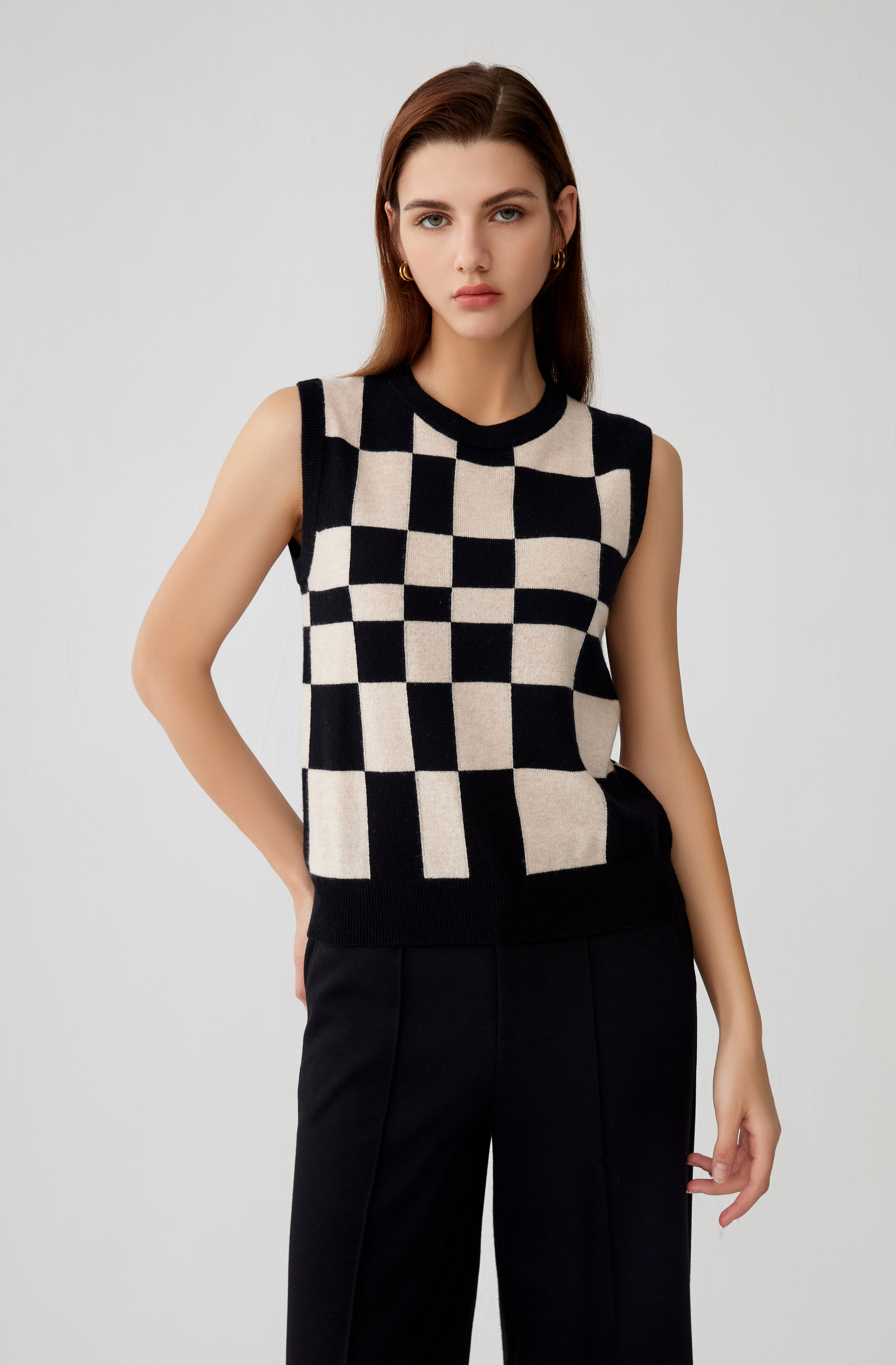 【无袖方格羊绒背心】羊绒世家23年秋冬新品女士100%山羊绒内搭毛衣
