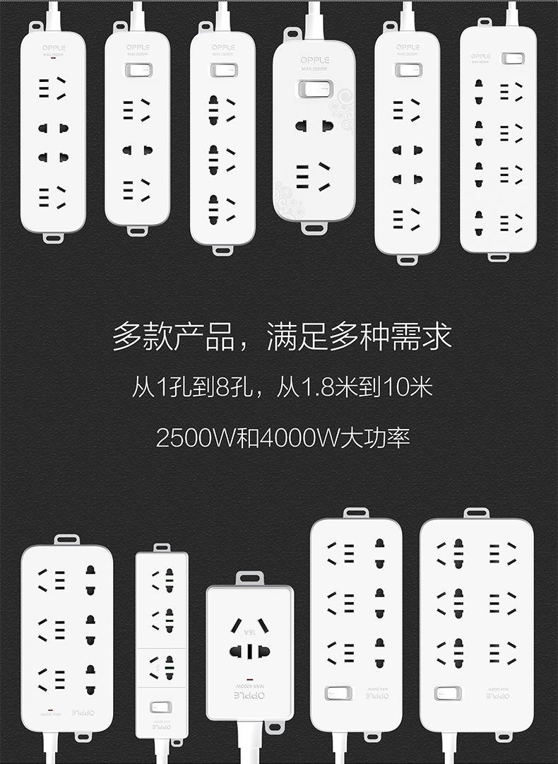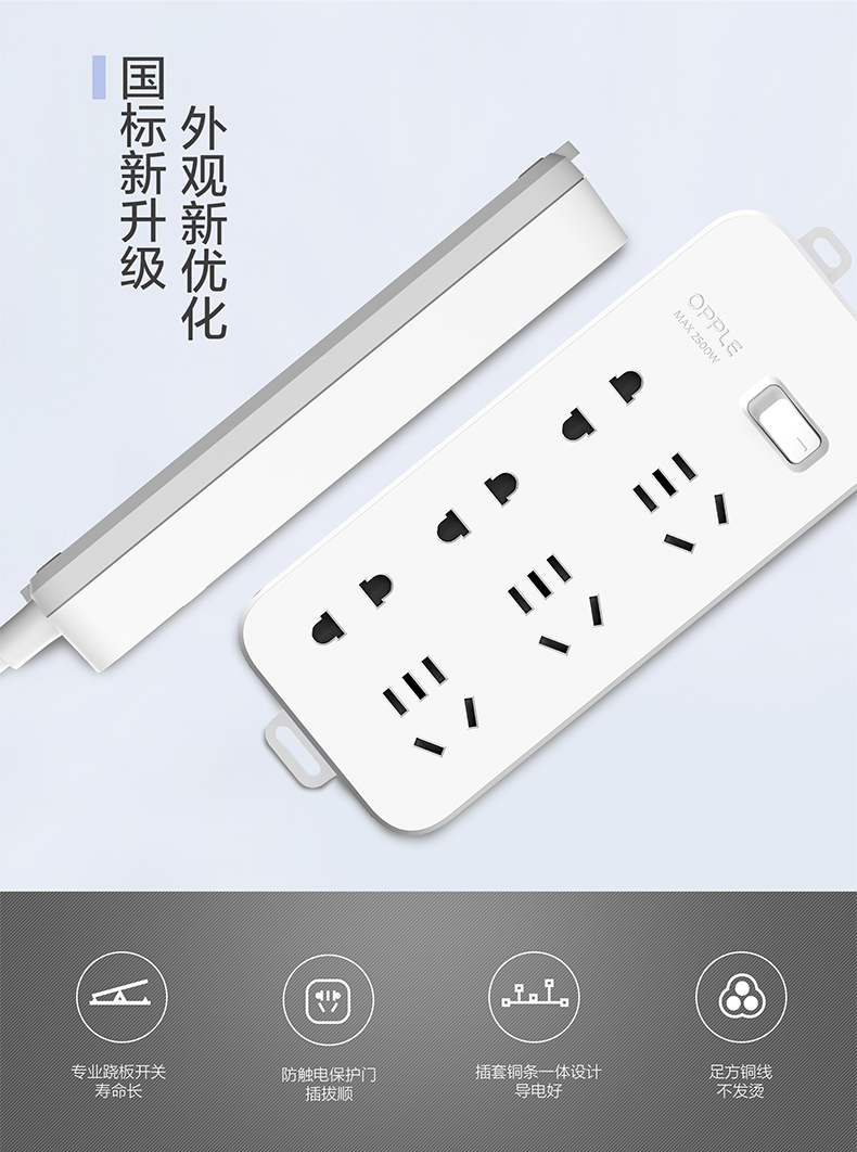 欧普(OPPLE)插排拖线板插线板带线面板多孔排插带usb快充家用插板S03