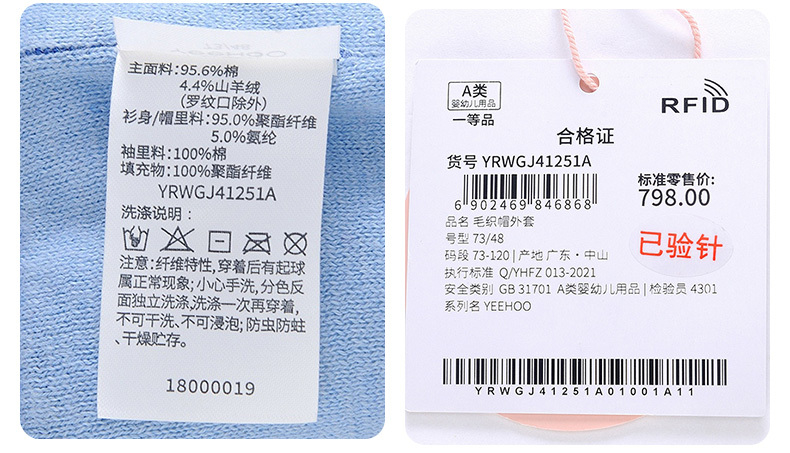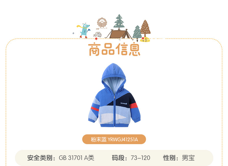英氏-童衣类(冬)E1英毛短帽外套粉末蓝100CM