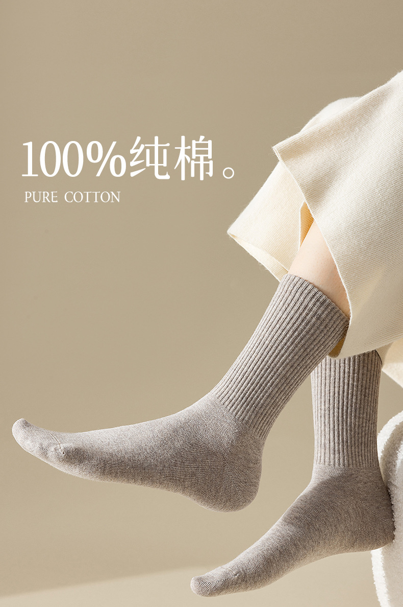 秋冬新款袜子女纯棉中筒抗菌女士长袜秋冬长筒无骨棉袜
