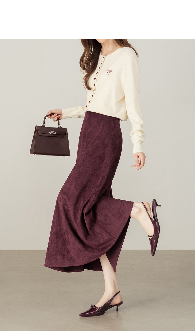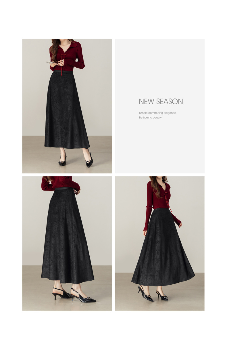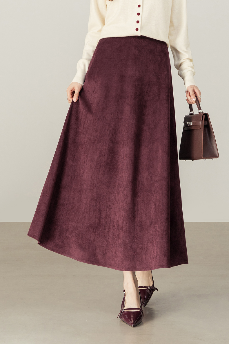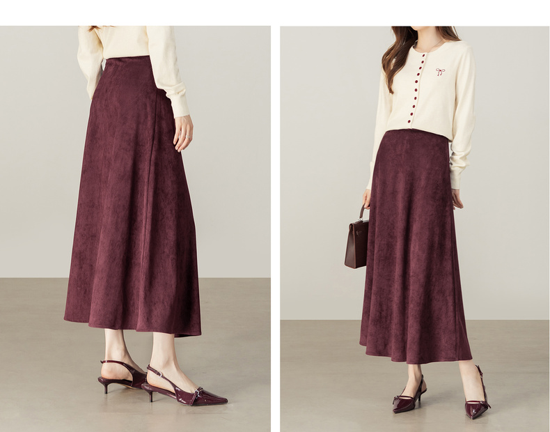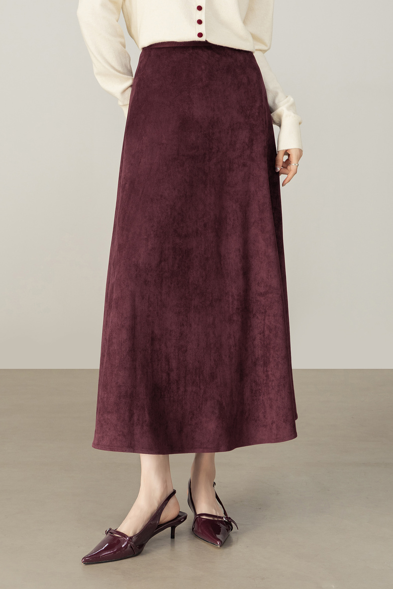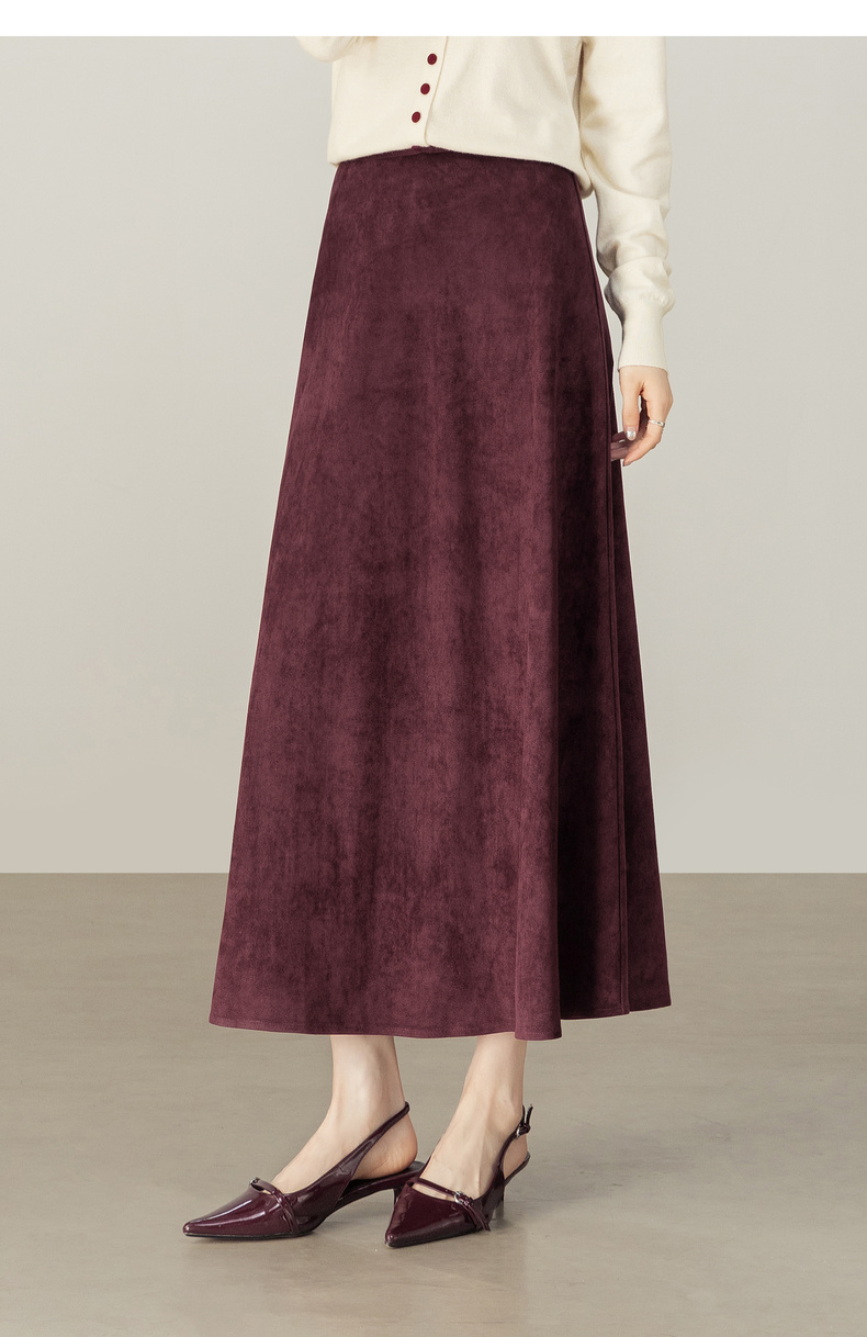 【内购】【遮肉显瘦】都市通勤梨型身材弹力高腰皮绒长款A字半身裙-W54QA4001