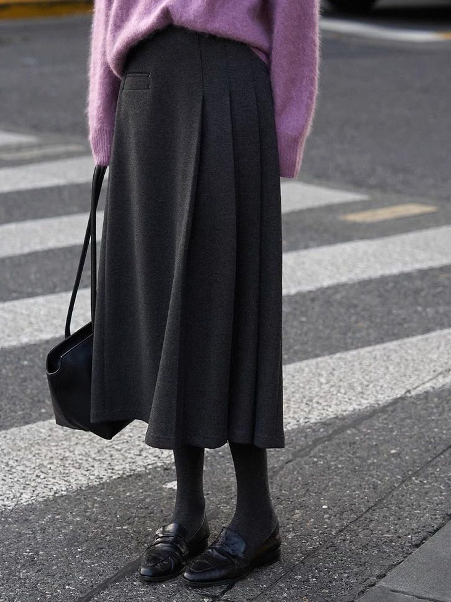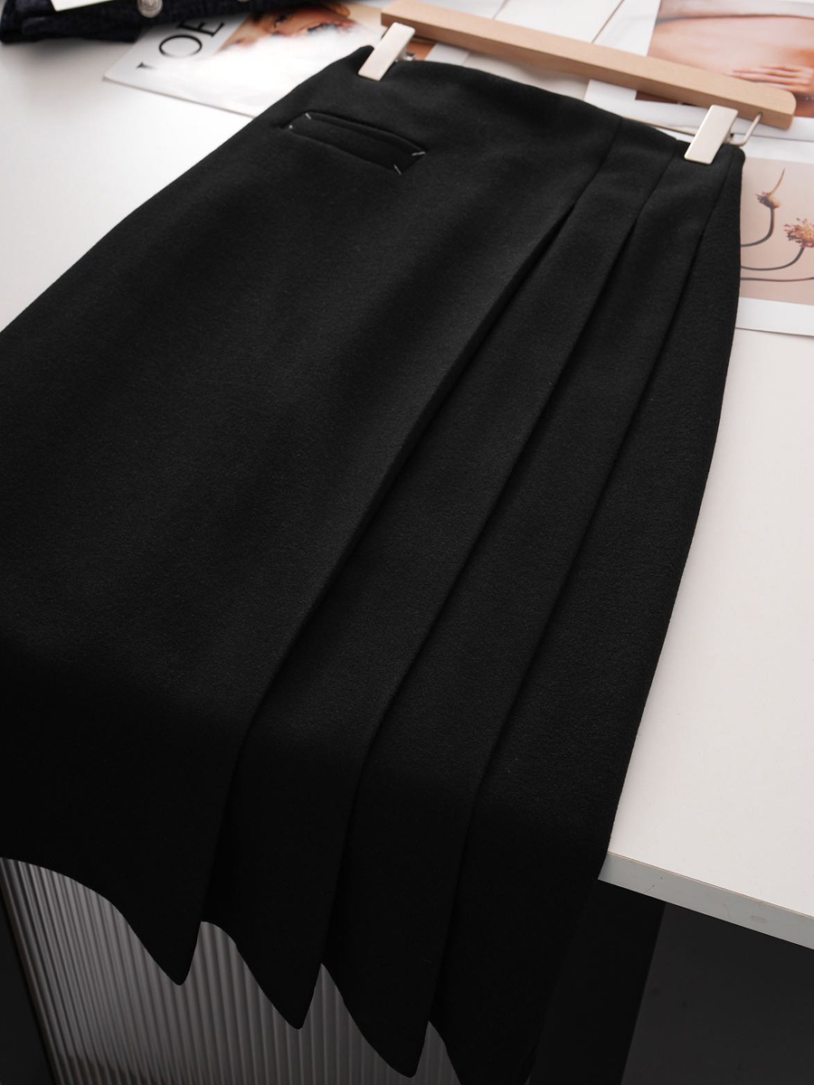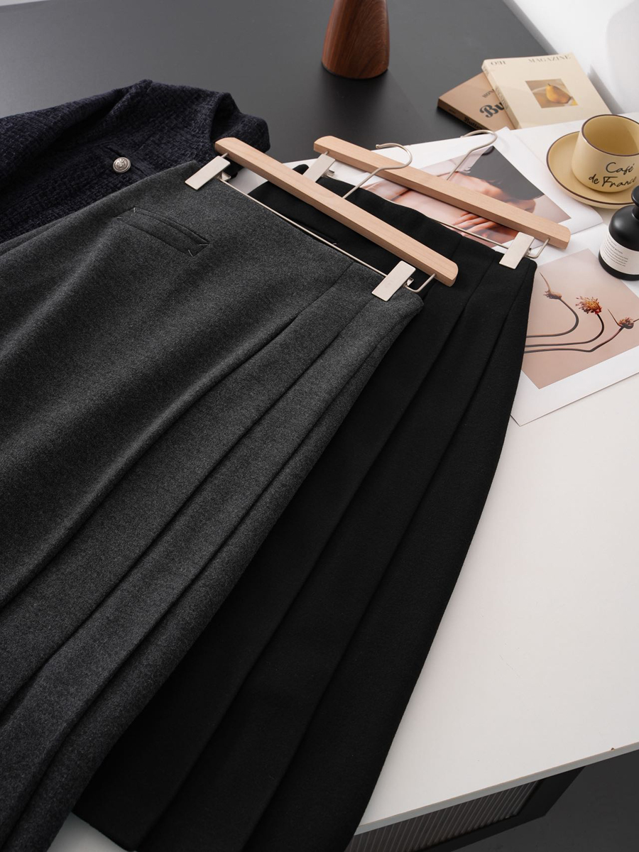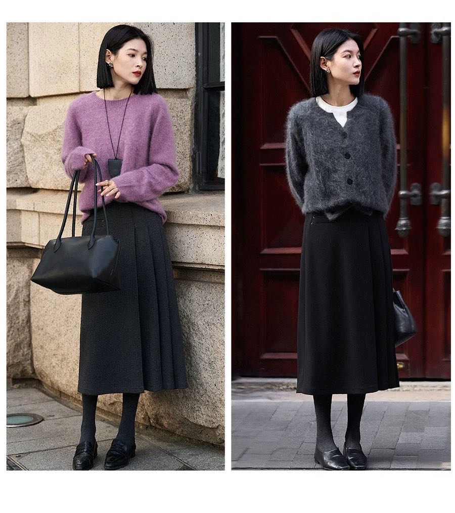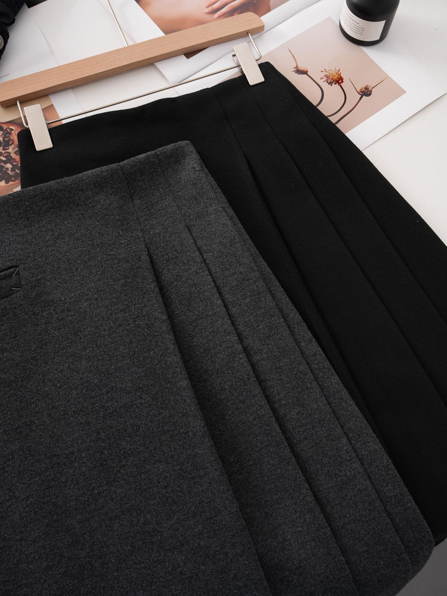 【百图lulu定制】【神仙毛呢裙】桑蚕丝羊毛混纺 显瘦 显高 保暖 毛呢 不规则 弹力腰围 百褶半裙