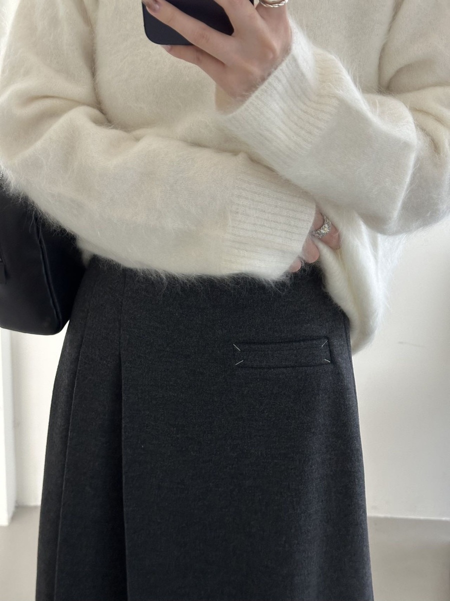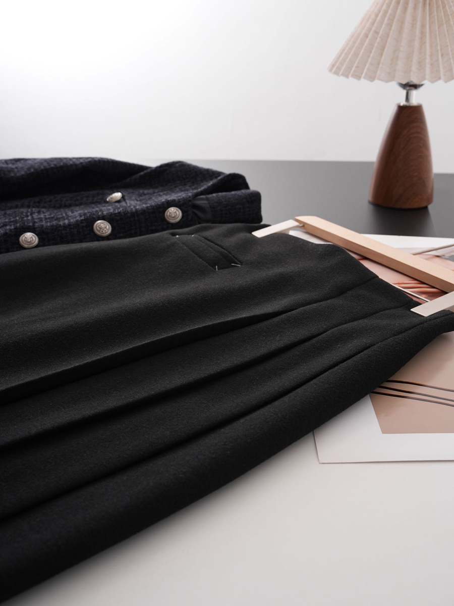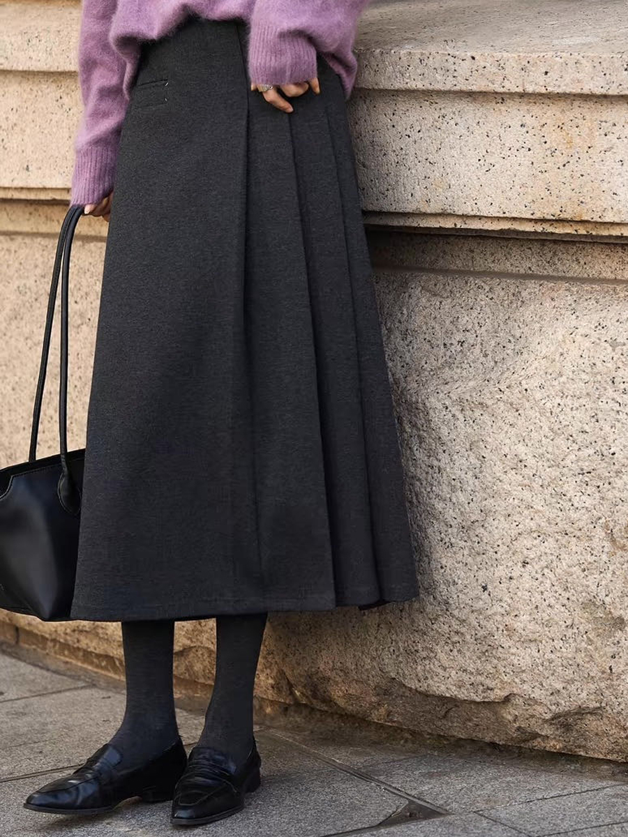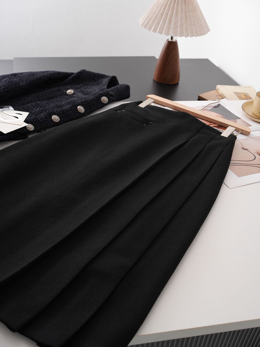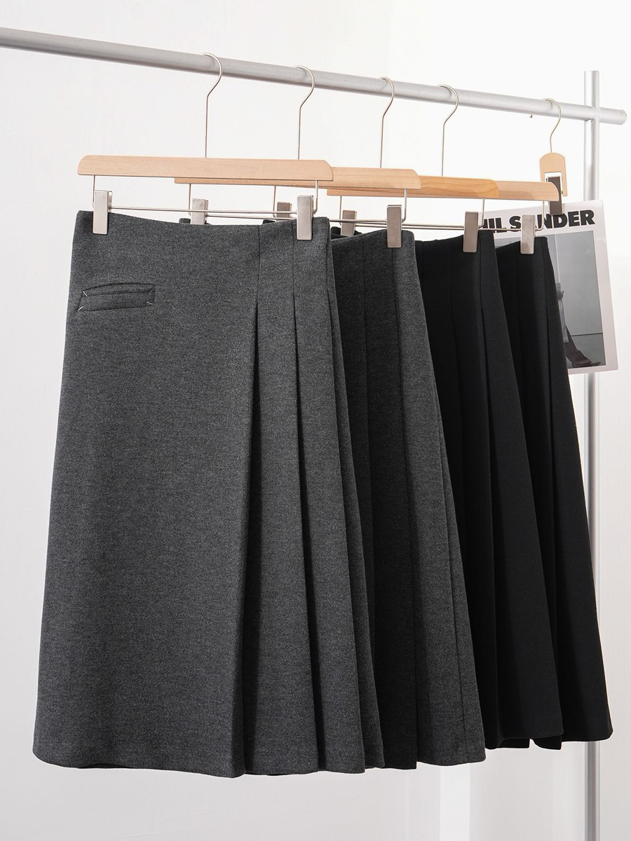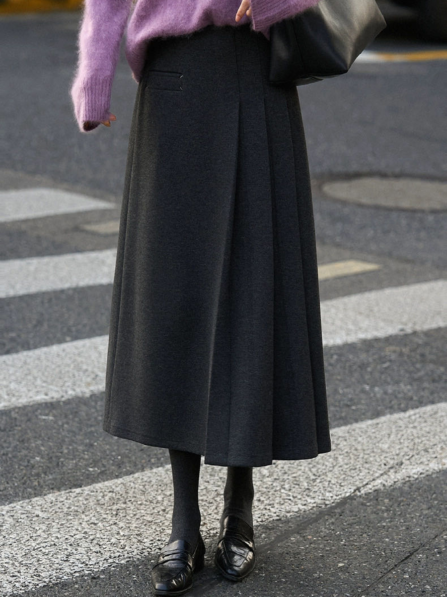【百图lulu定制】【神仙毛呢裙】桑蚕丝羊毛混纺 显瘦 显高 保暖 毛呢 不规则 弹力腰围 百褶半裙