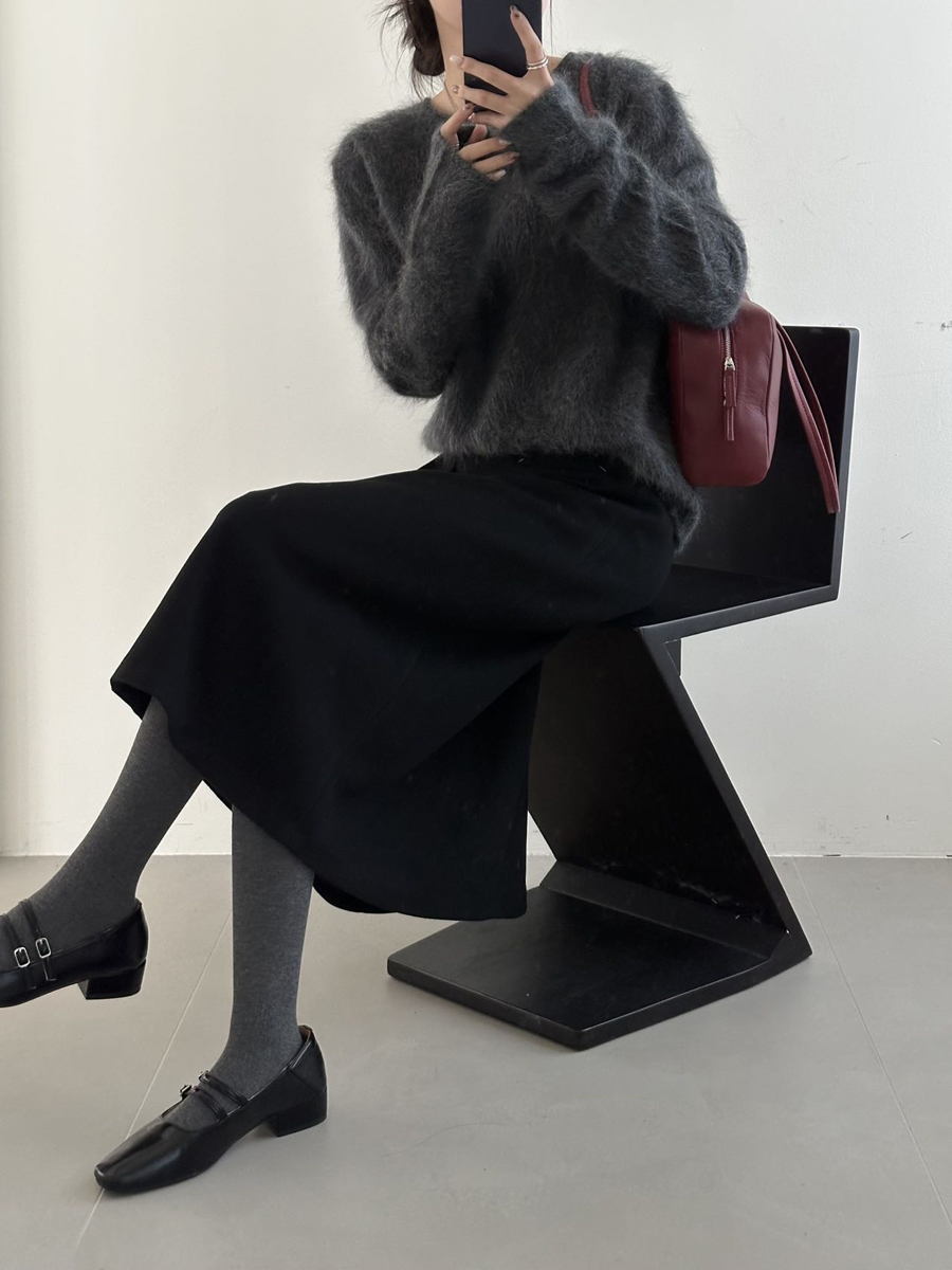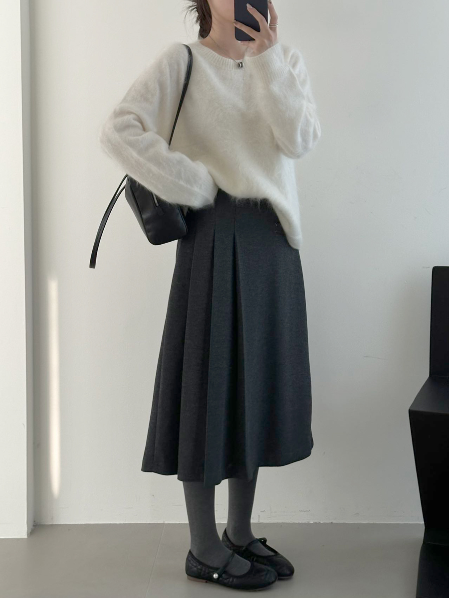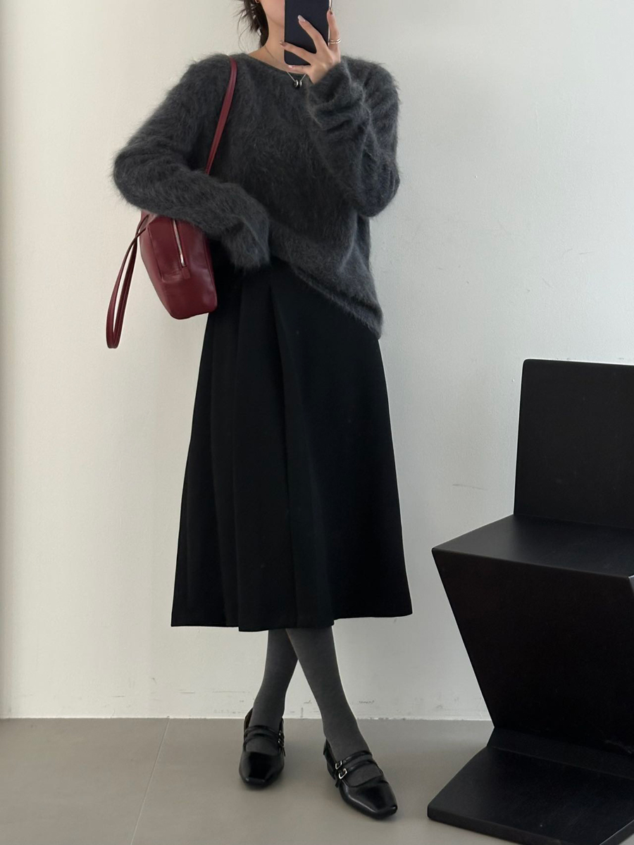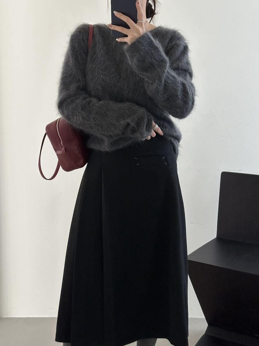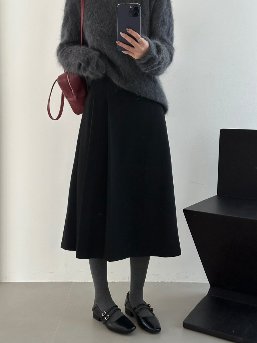 【百图lulu定制】【神仙毛呢裙】桑蚕丝羊毛混纺 显瘦 显高 保暖 毛呢 不规则 弹力腰围 百褶半裙