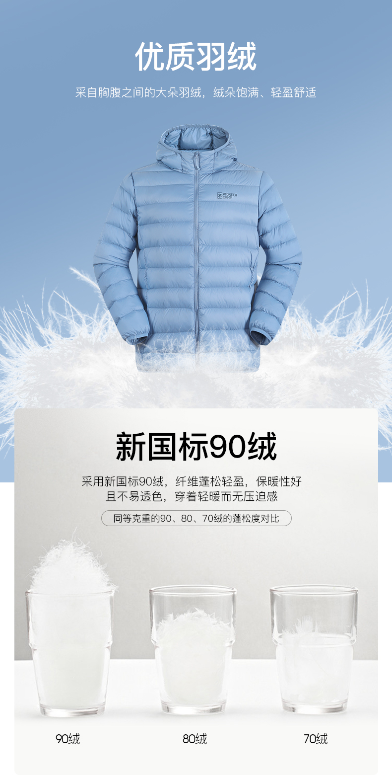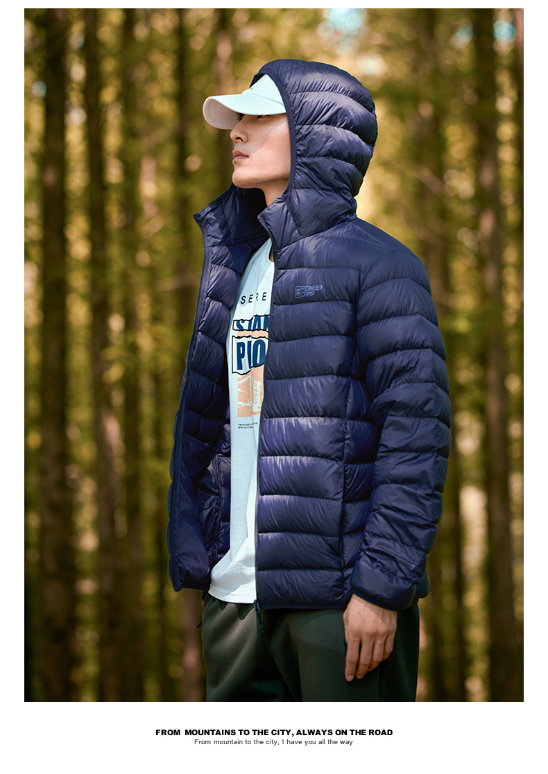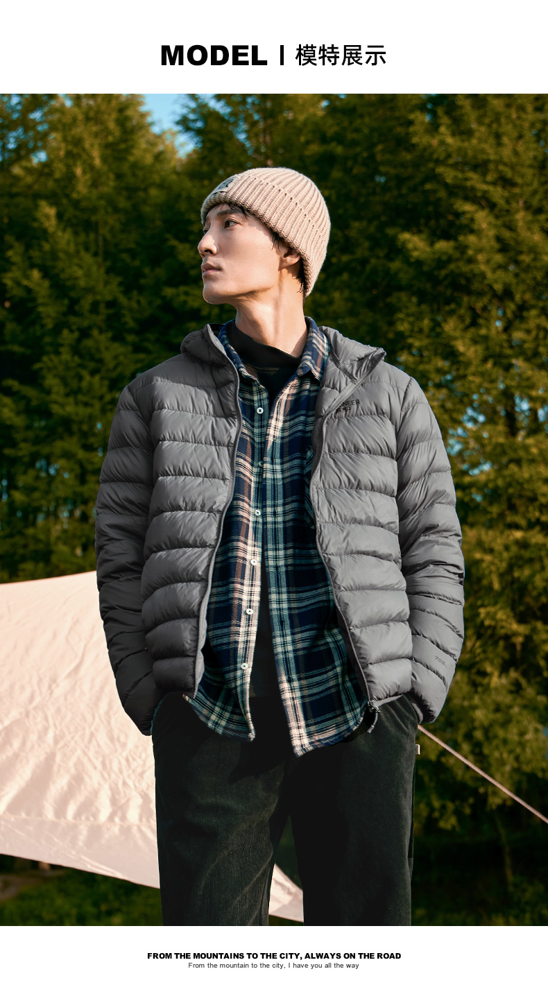 拓路者轻薄羽绒服男士秋冬户外连帽保暖90白鸭绒内胆短款羽绒外套