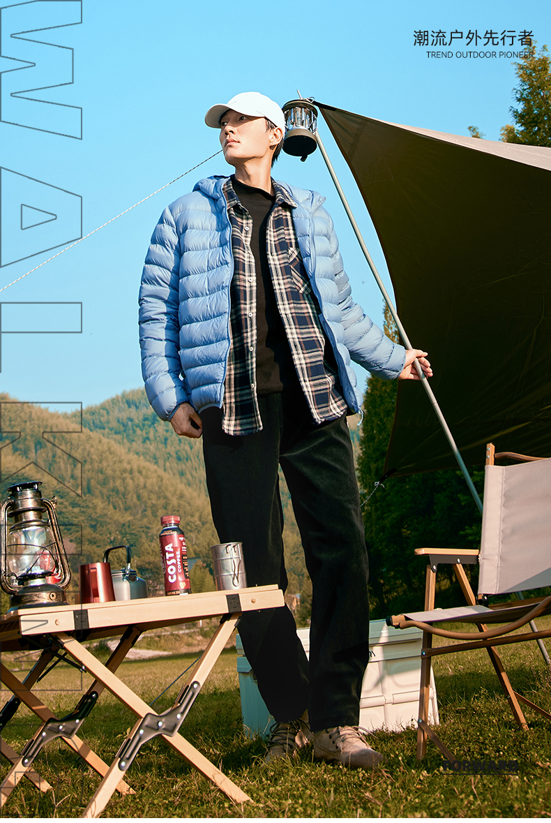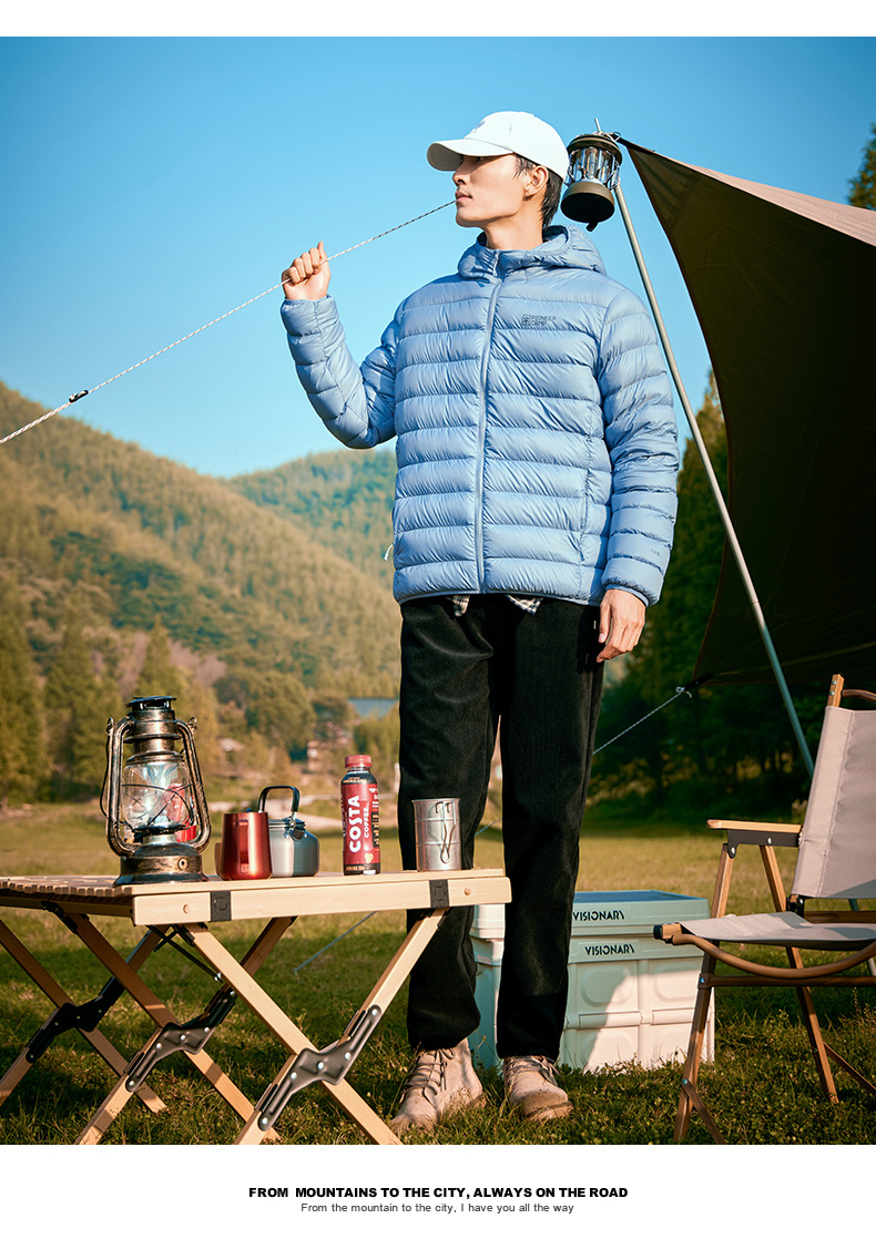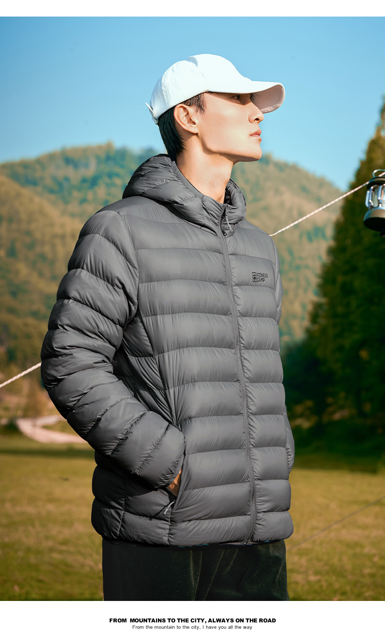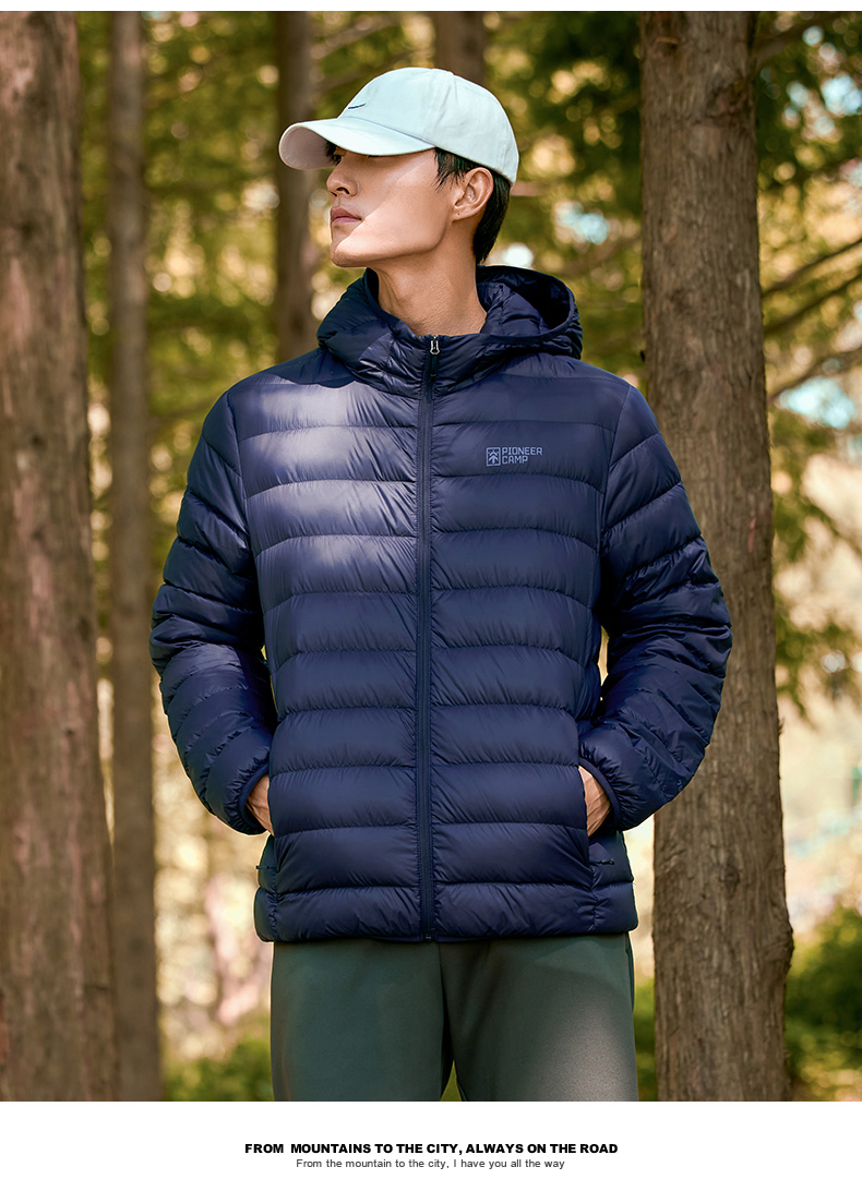 拓路者轻薄羽绒服男士秋冬户外连帽保暖90白鸭绒内胆短款羽绒外套