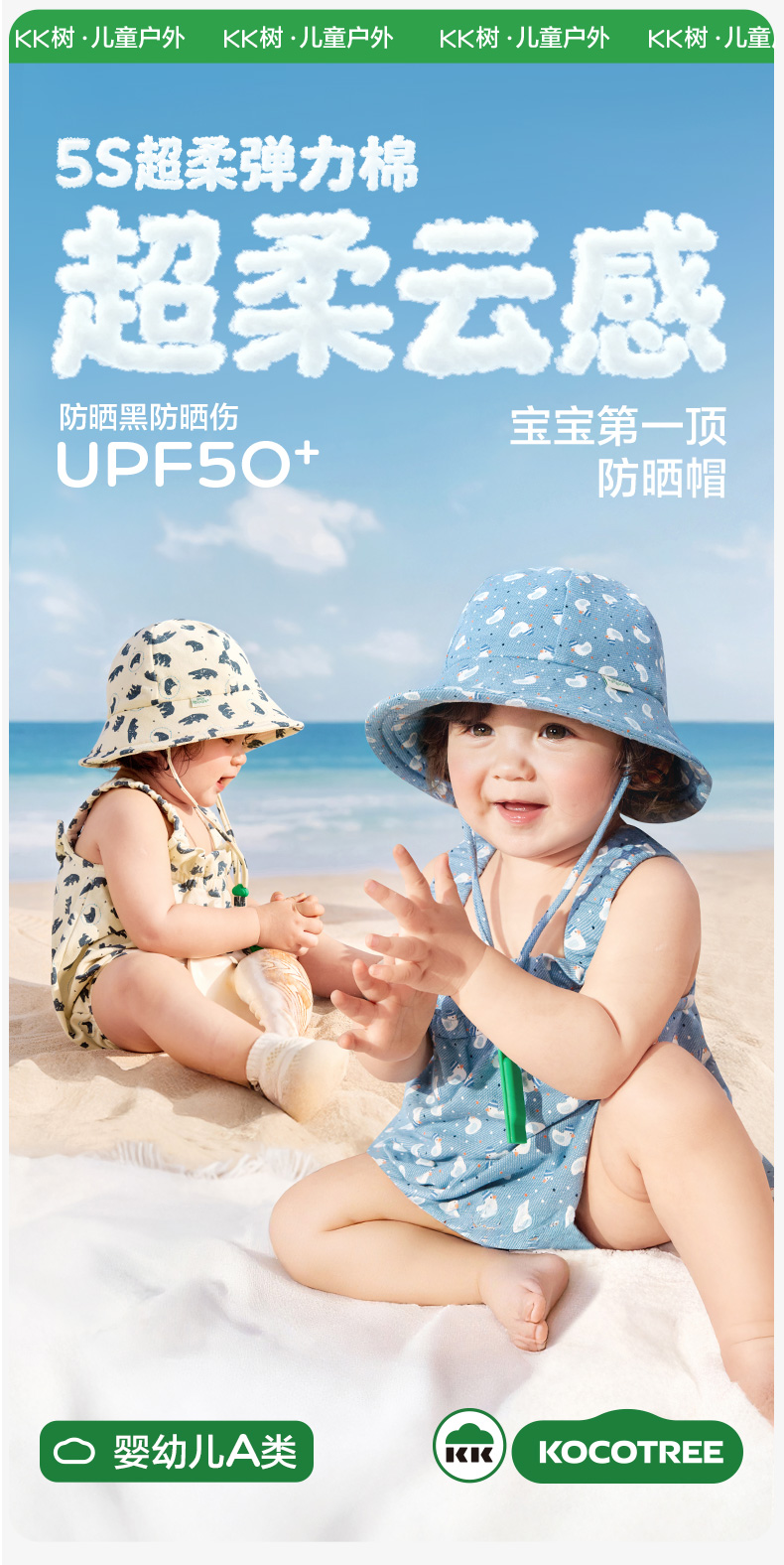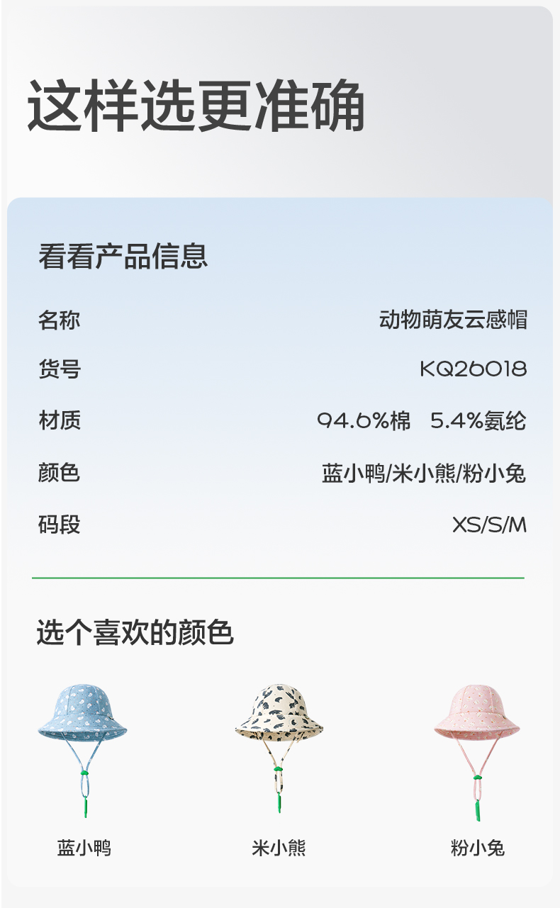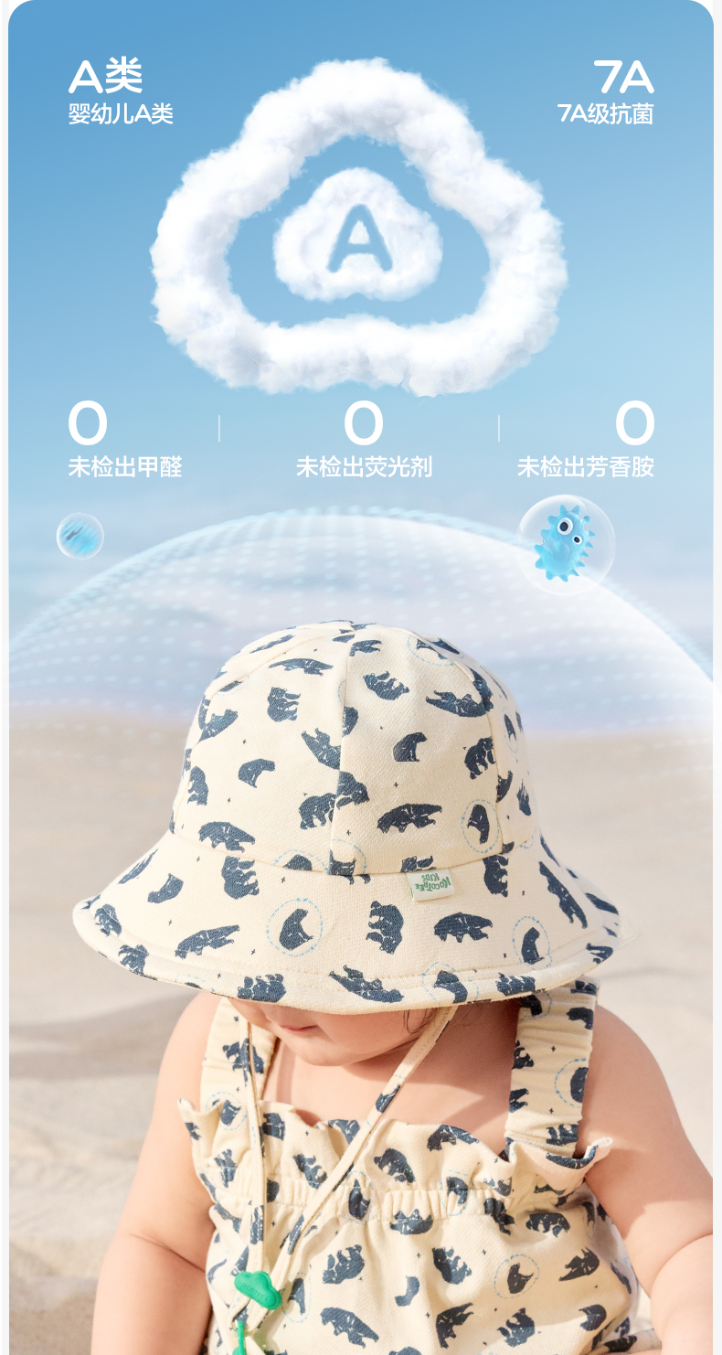【云优选】KK树婴儿防晒帽宝宝渔夫帽儿童遮阳防紫外线盆帽男女童太阳帽春夏动物萌友云感帽
