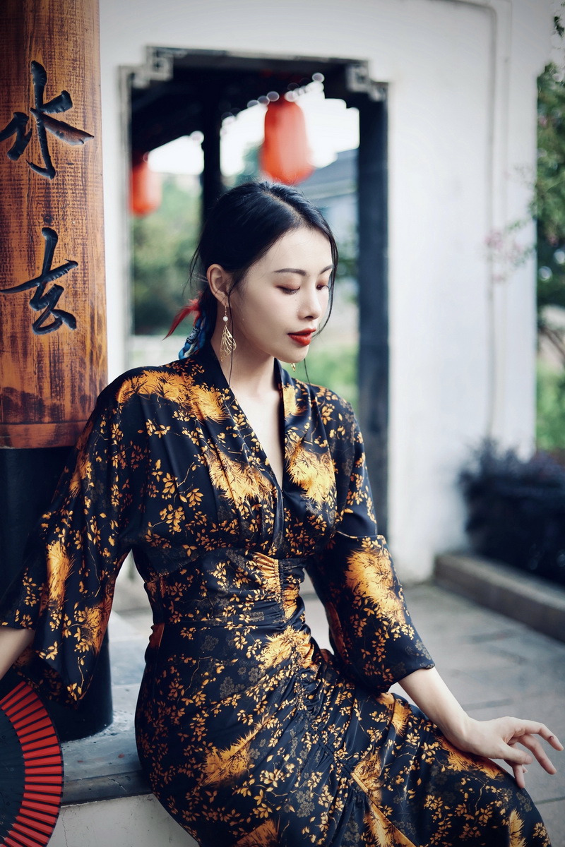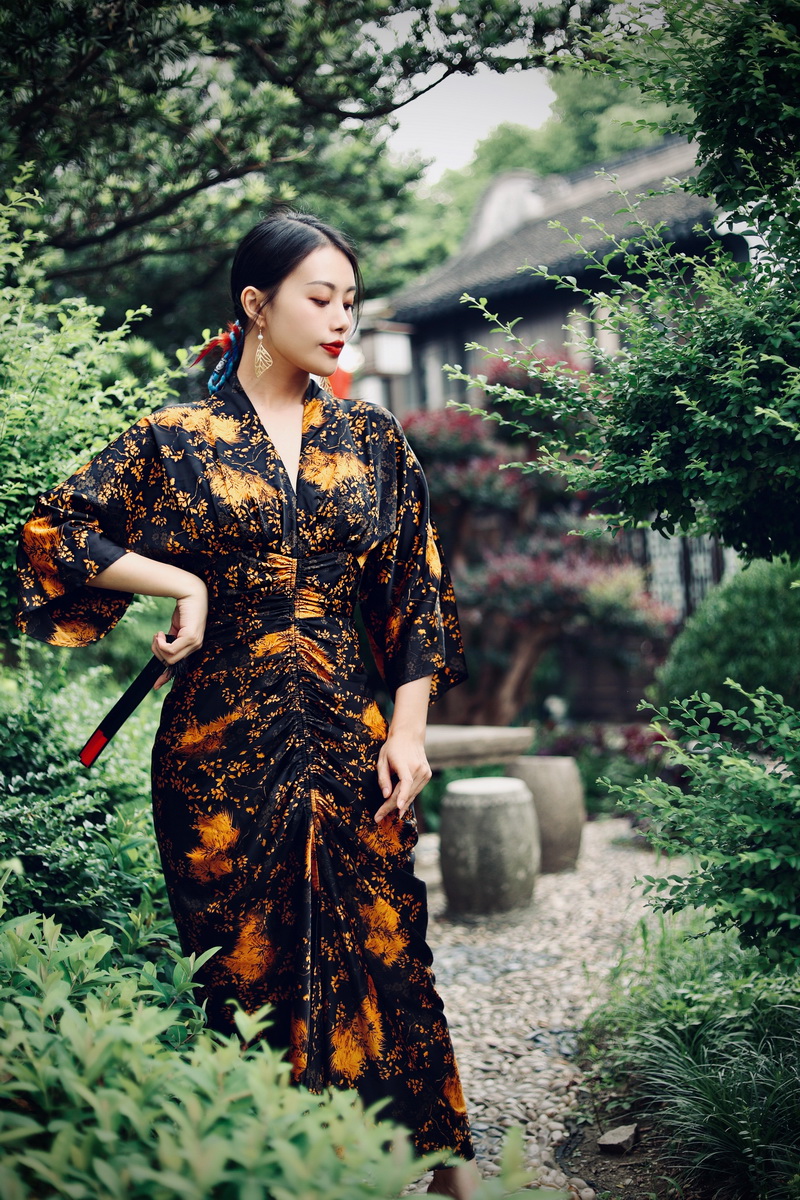 四英寸2022暗香疏影初夏新款轻熟风古风连衣裙长袖大气中长91205