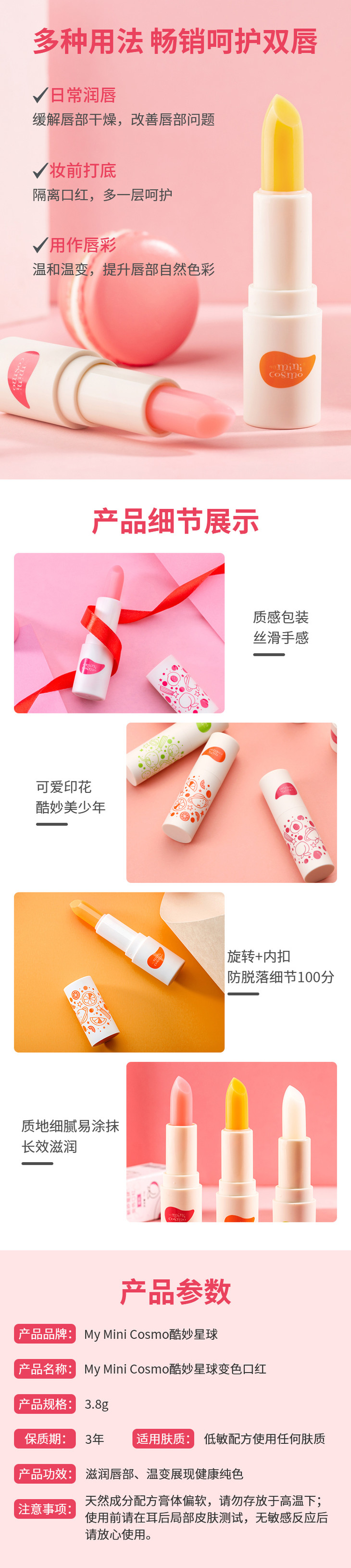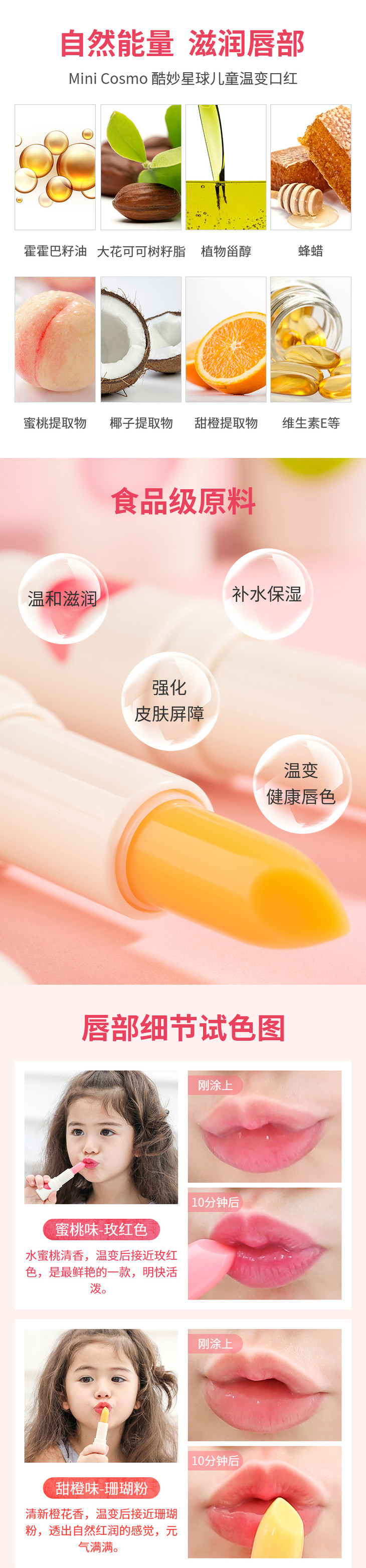 Mini cosmo儿童变色口红唇膏滋润补水保湿防干裂小女孩专用
