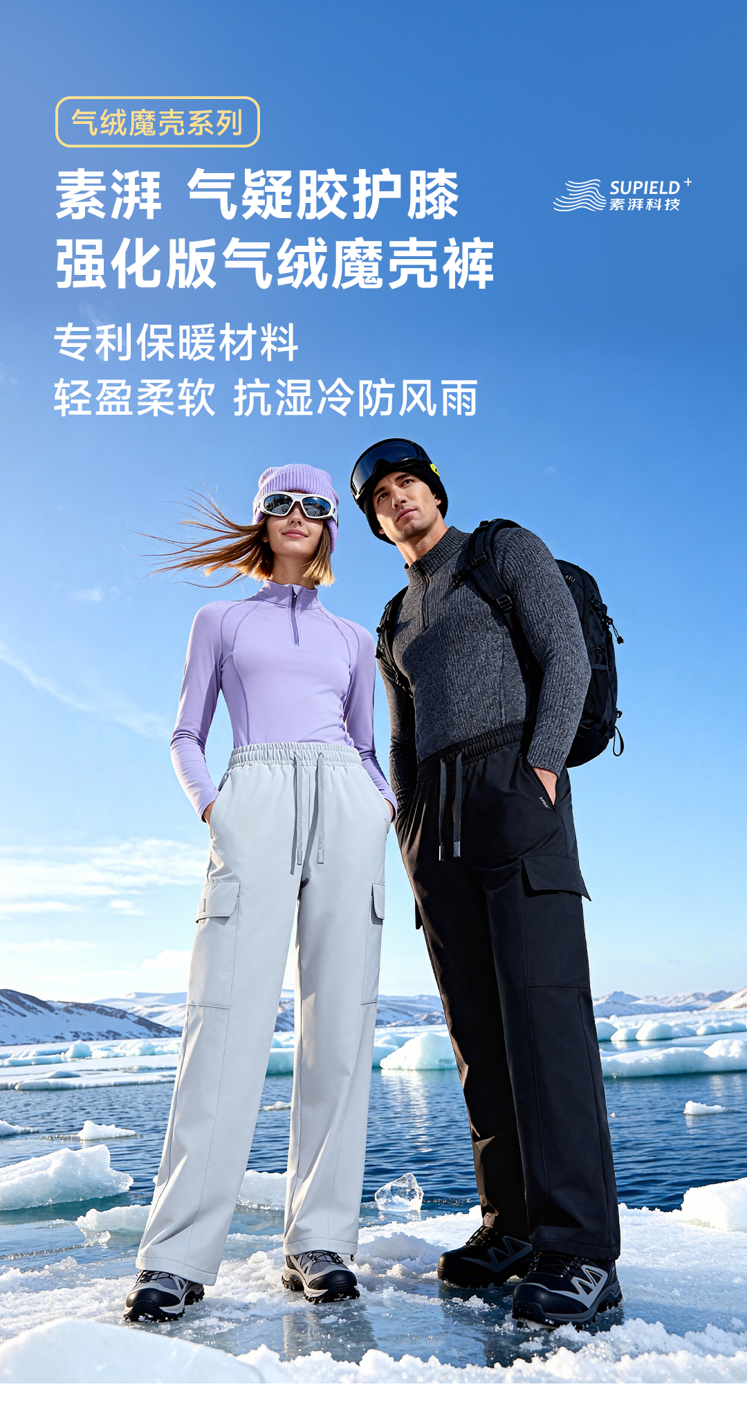 素湃Supield冬季气凝绒休闲裤户外抗湿冷防风雨东北外穿保暖棉裤