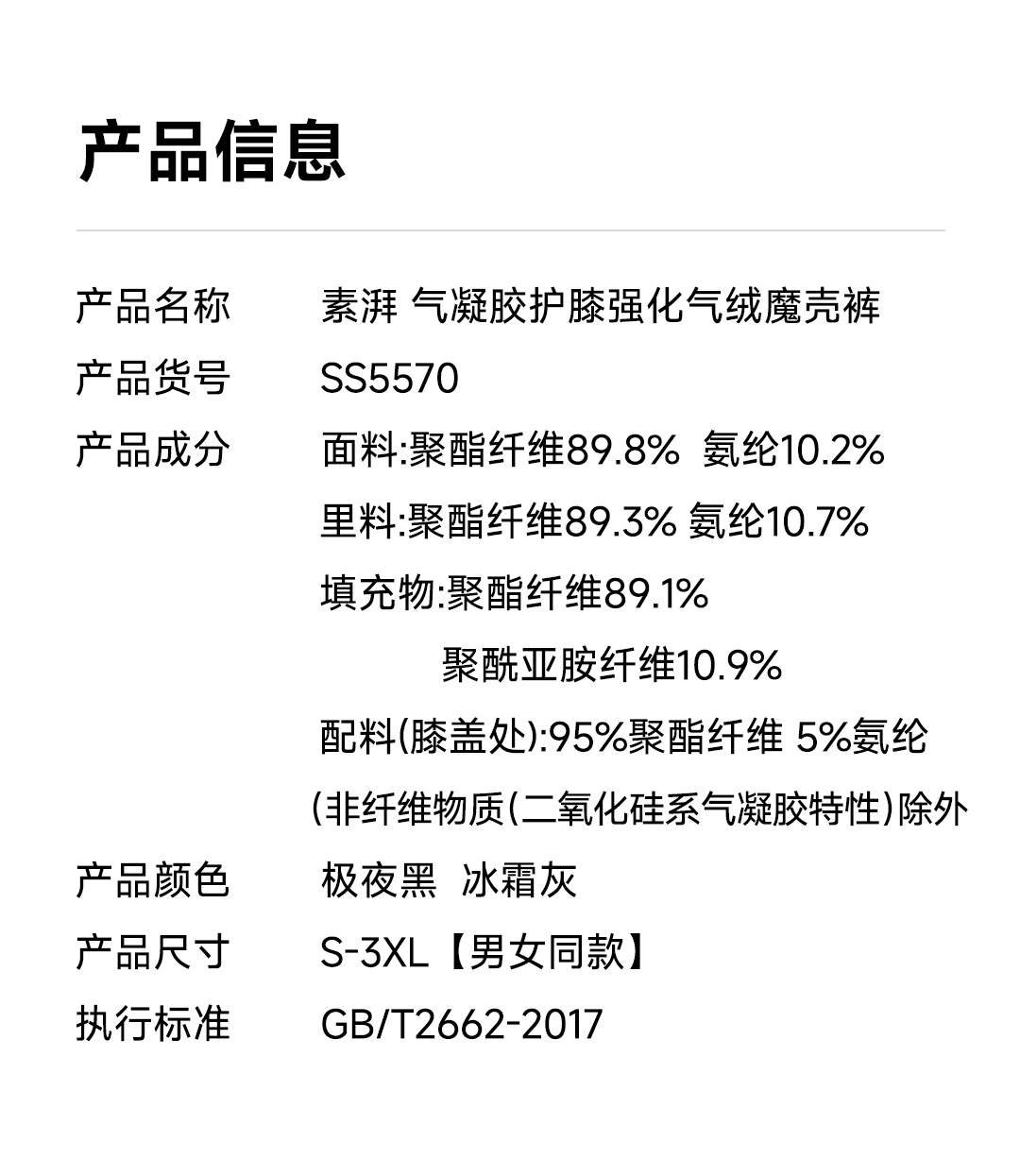 Supield素湃黑科技宇航气凝胶温控加热抗寒服302