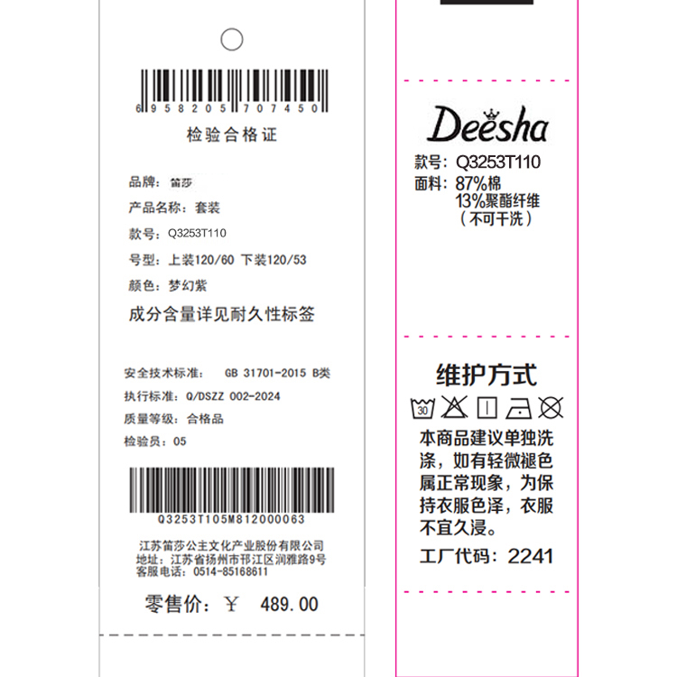笛莎Deesha 2025秋季新款女童套装