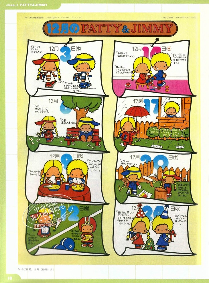 ピックアップキャラクター〈パティ&ジミー、ハローキティ、リトルツインスターズ、マイメロディ、タキシードサム、ゴロピカドン 、ザ ボードビルデュオ、マロンクリーム、ぽこぽん日記、みんなのたあ坊、けろけろけろっぴ…他〉
