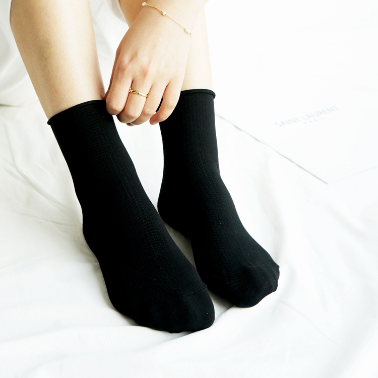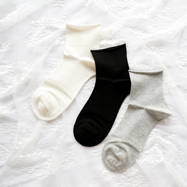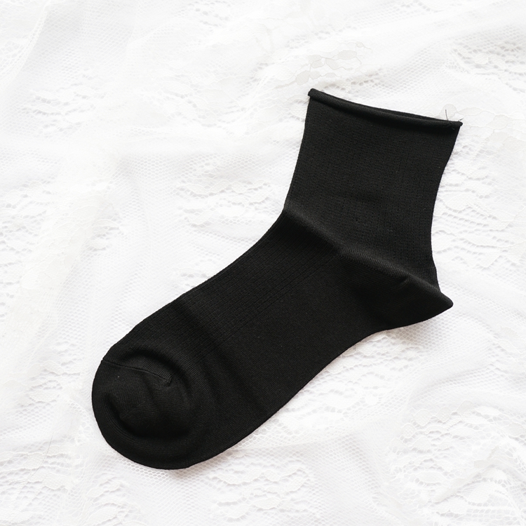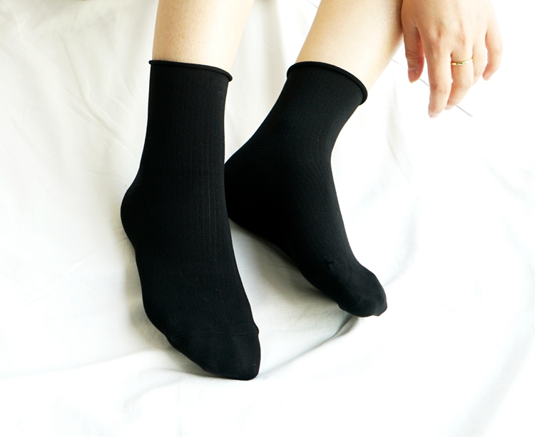 松口绢丝竖暗花条女短袜34468