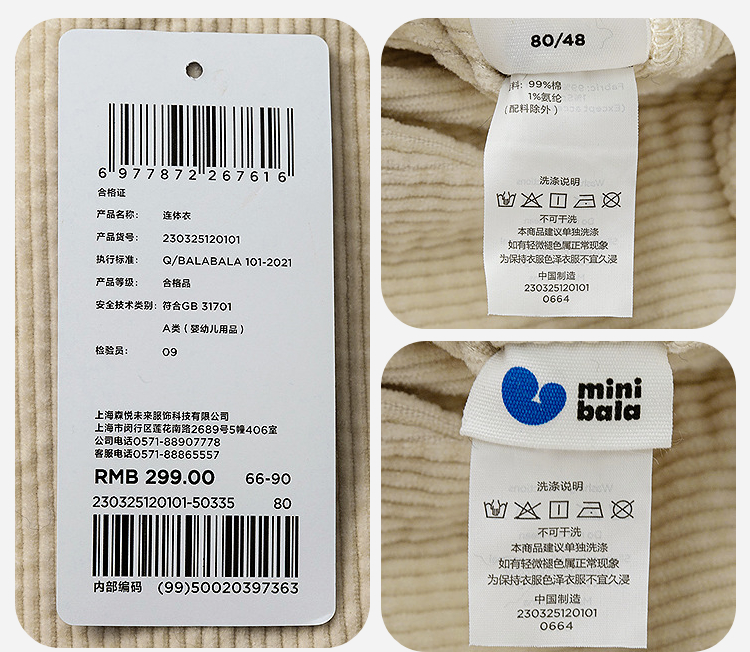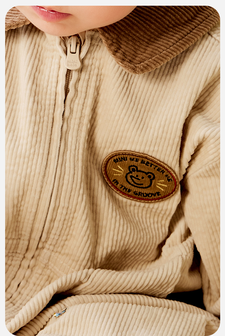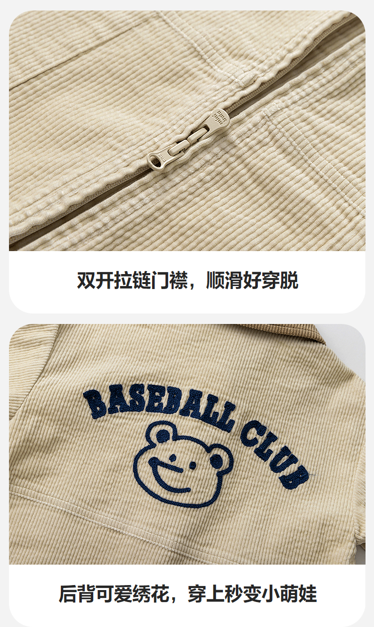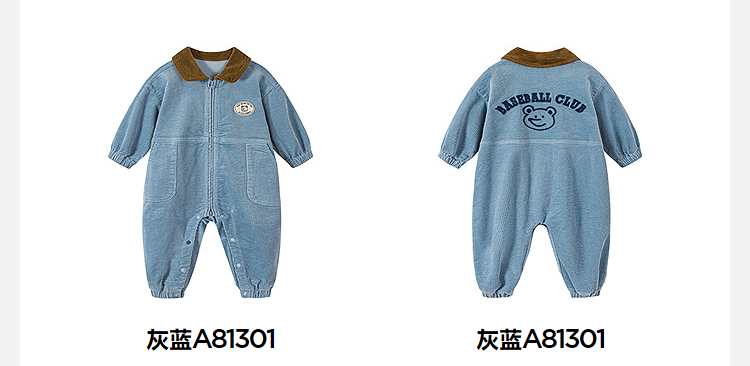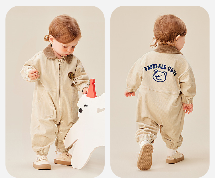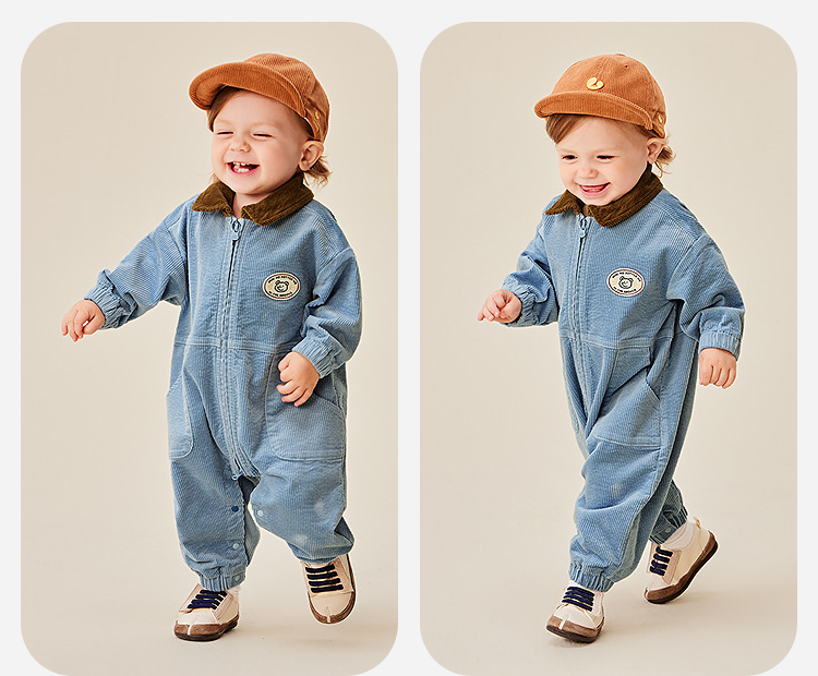 迷你巴拉婴童外出连体衣男女宝宝复古工装灯芯绒爬服2025年秋季