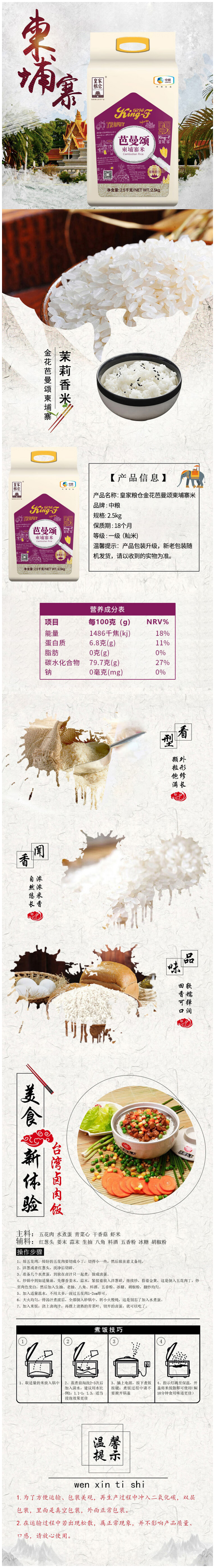 【八十八倉甄选】中粮皇家粮仓金花芭曼颂柬埔寨米2.5kg