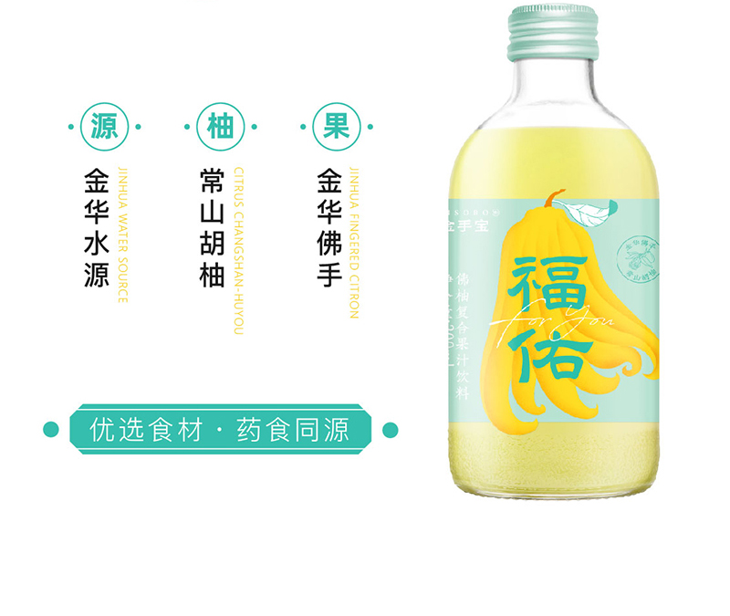 福佑佛柚复合果汁饮料 清新甘甜 300ml*12瓶