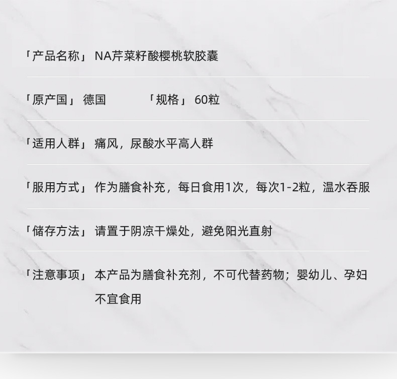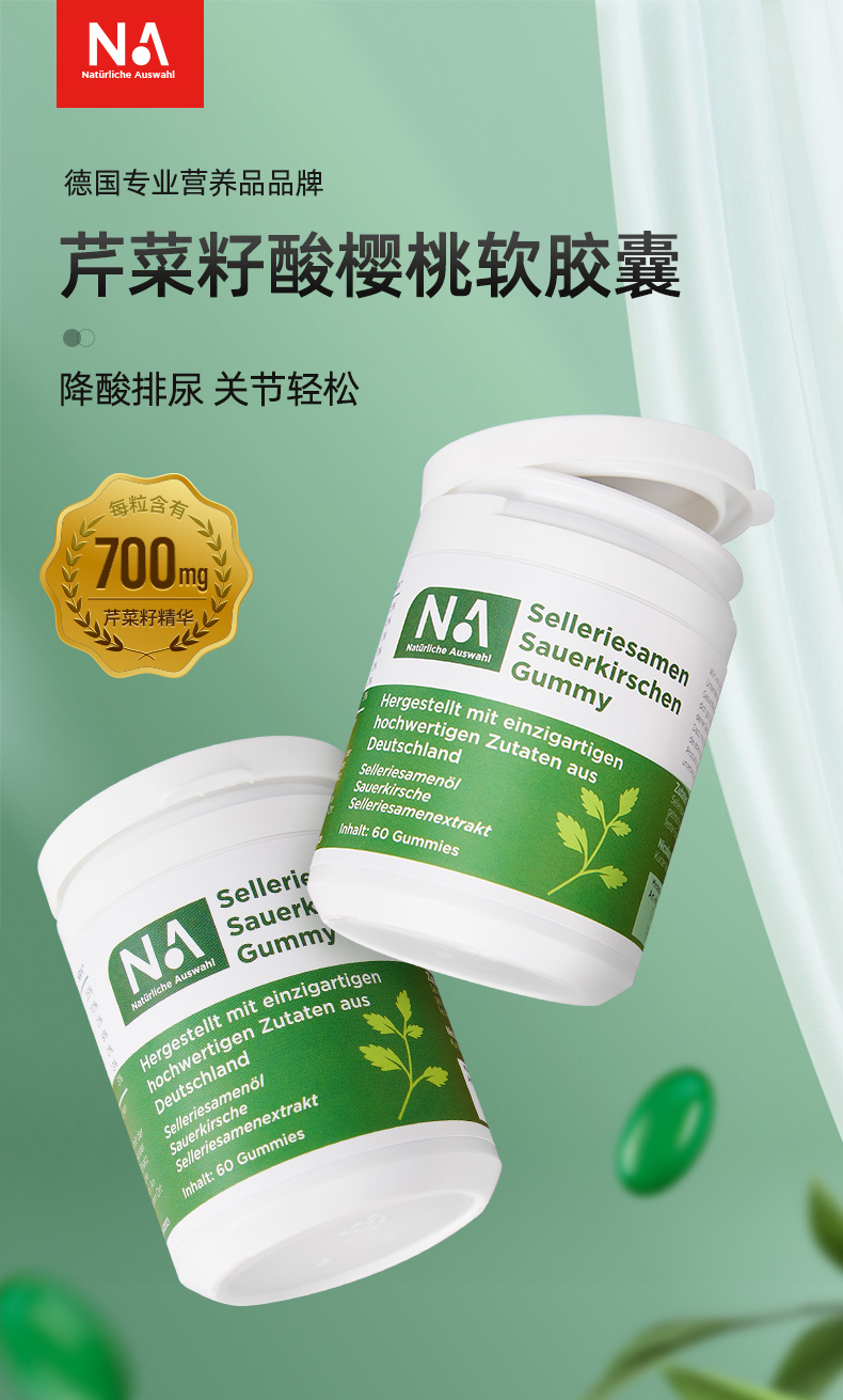 限时跳楼价 德国原装进口【NA芹菜籽酸樱桃痛风胶囊】 5大天然成分狙击痛风 ,有效降低尿酸,缓解关节疼痛,改善嘌呤代谢!