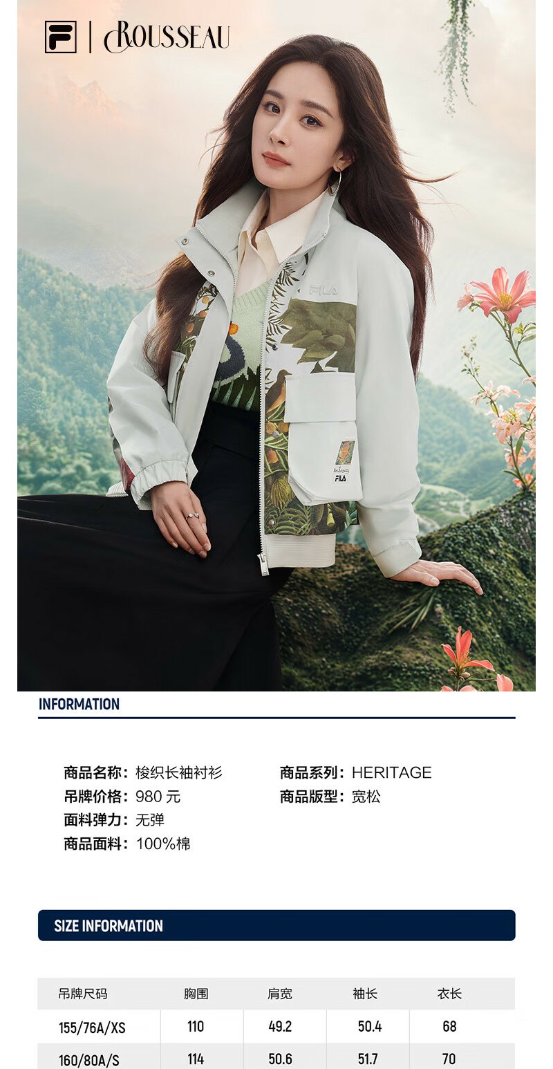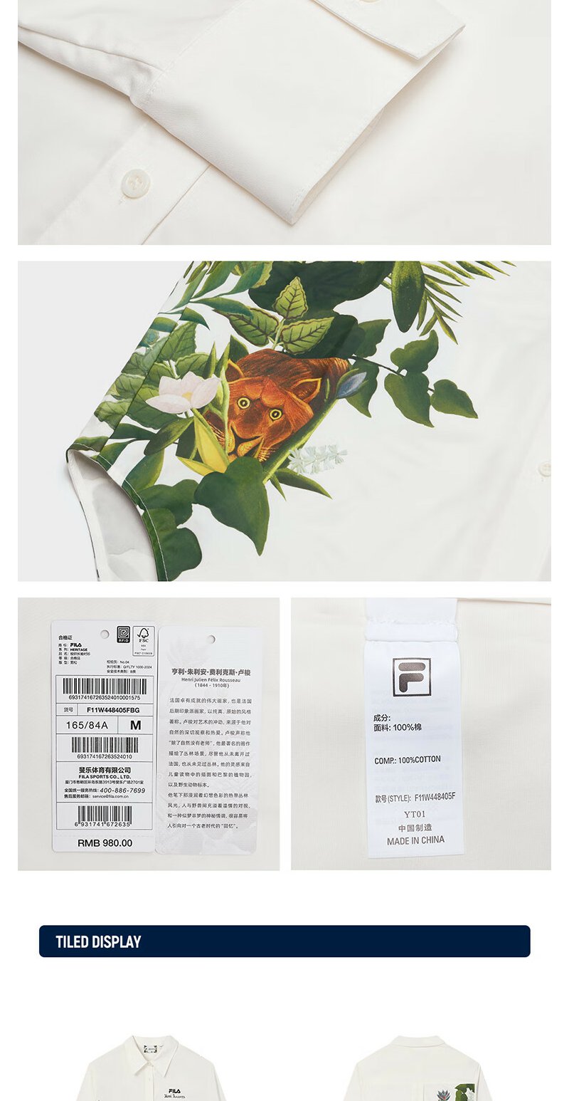【斐乐】FILAx 卢梭 斐乐女梭织长袖衬衫杨幂同款2024冬新款宽松丛林印花上衣