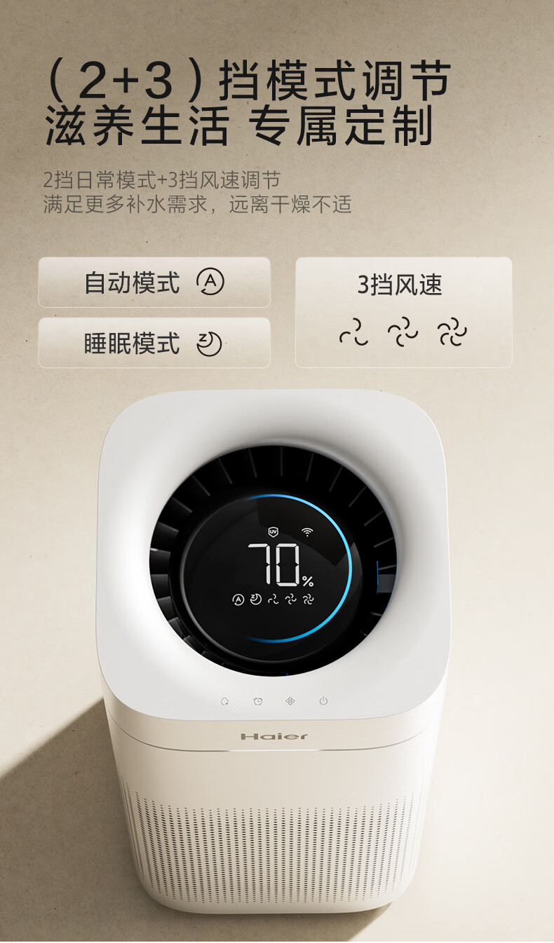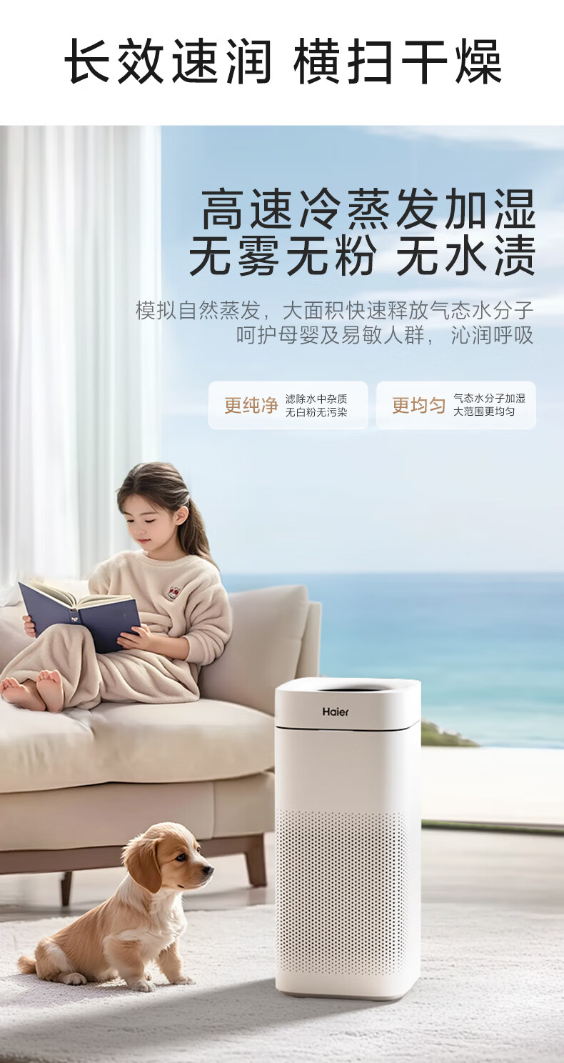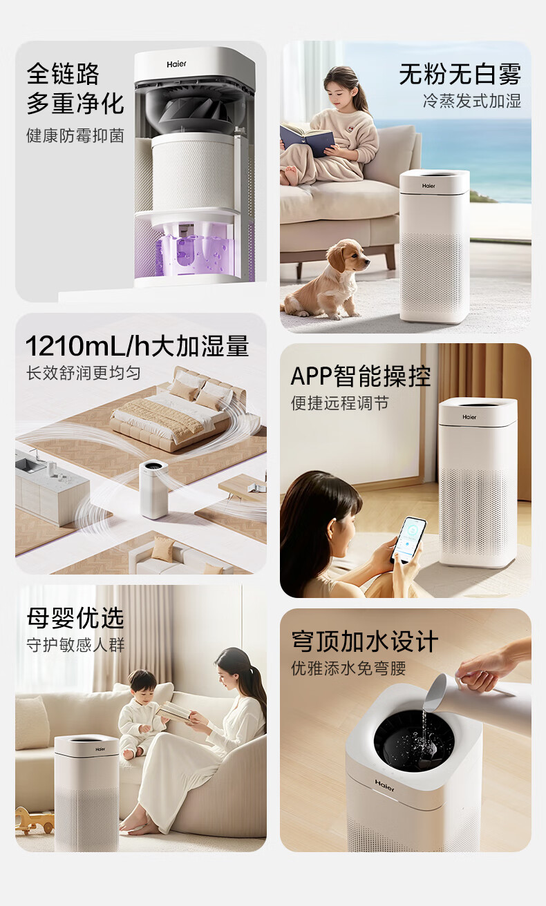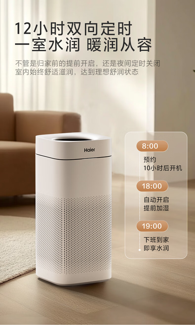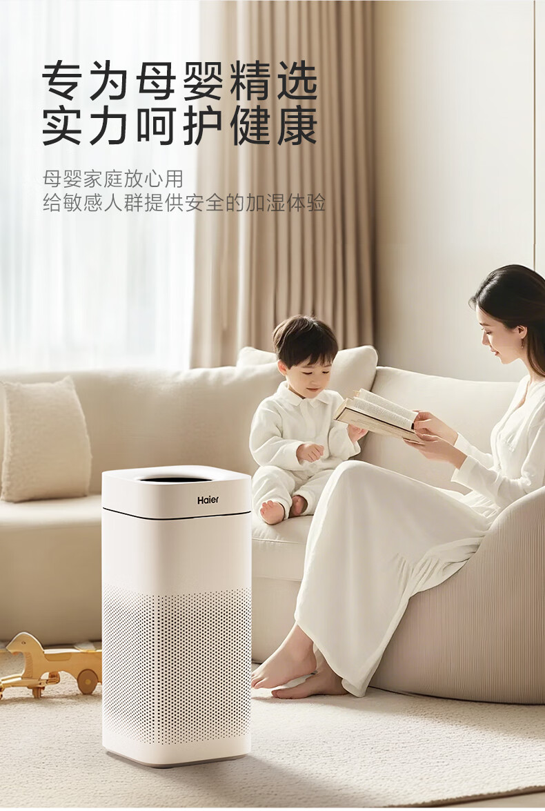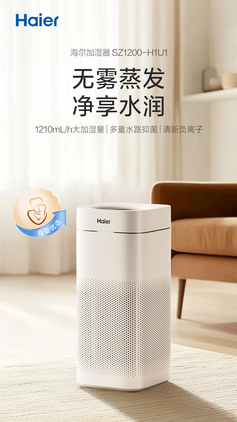 海尔无雾加湿器母婴级家用全水路电解水杀菌技术静音客厅轻音孕妇负离子大容量超清大屏SZ1200-H1U1