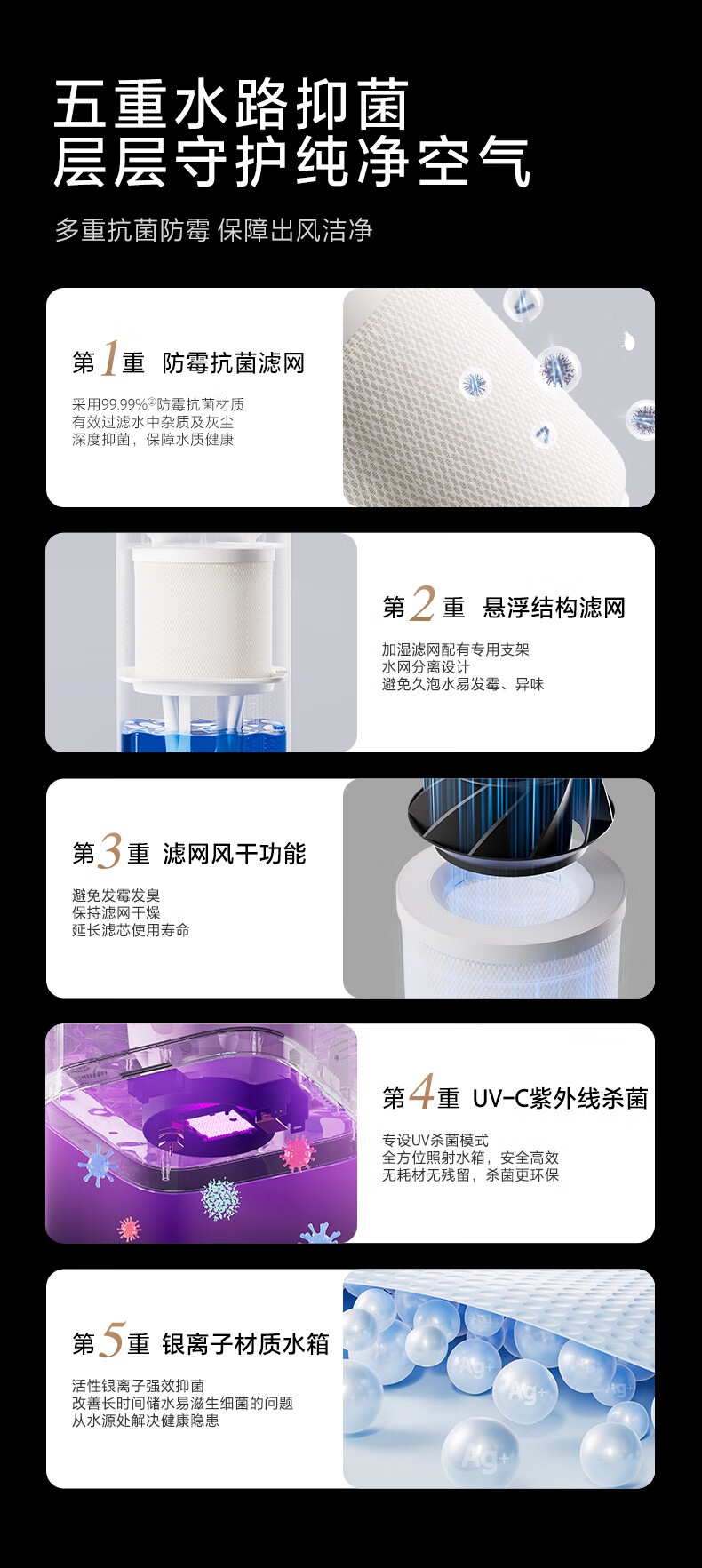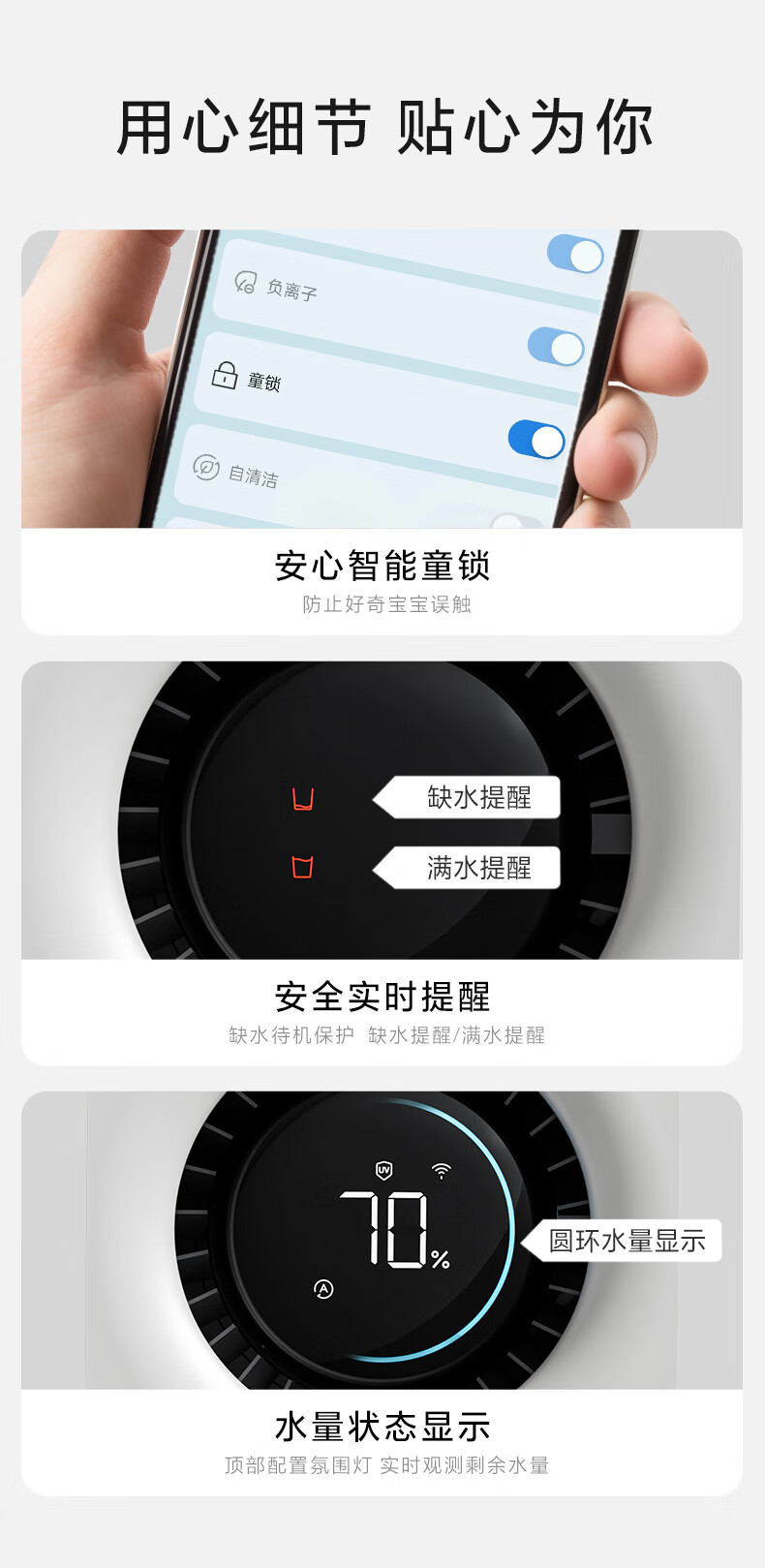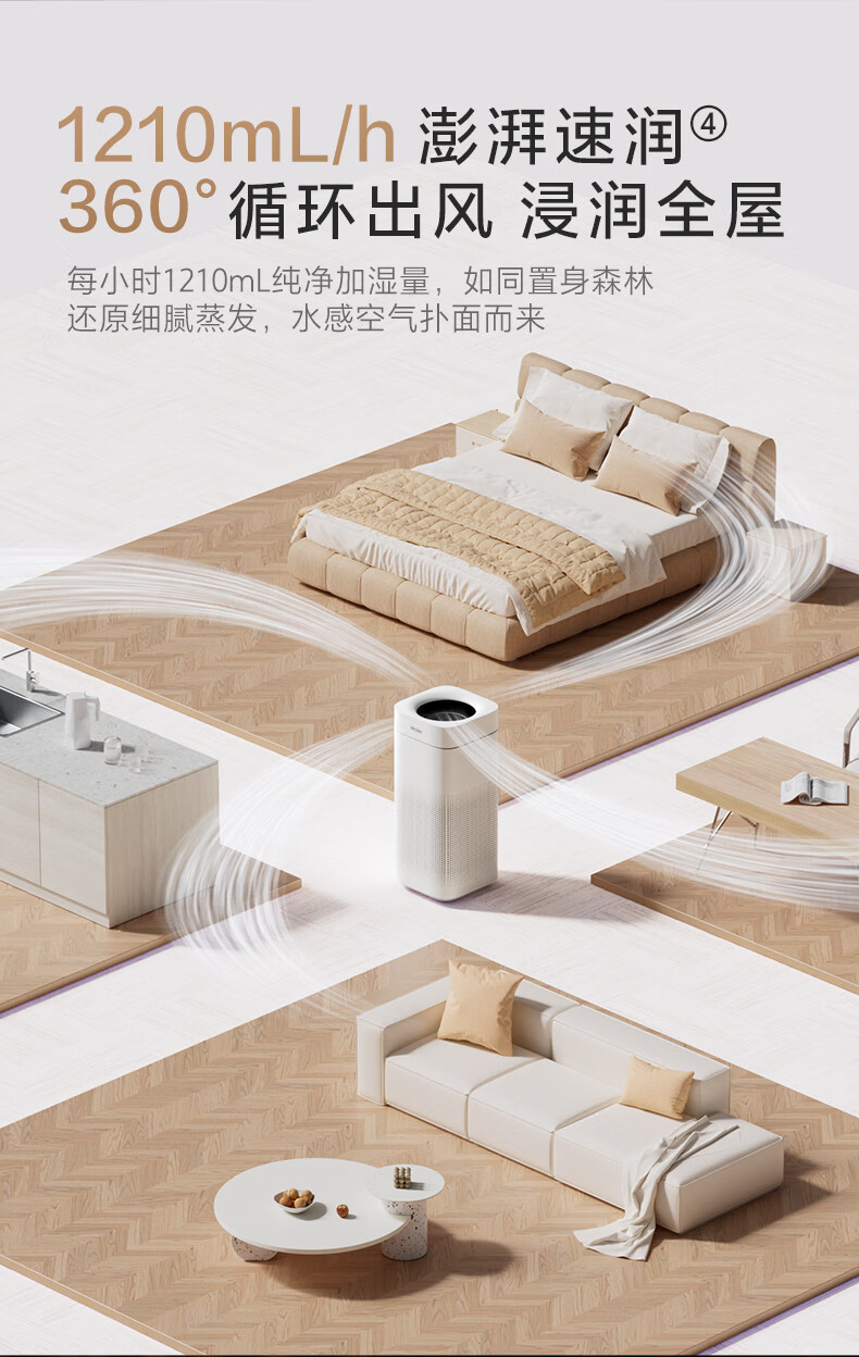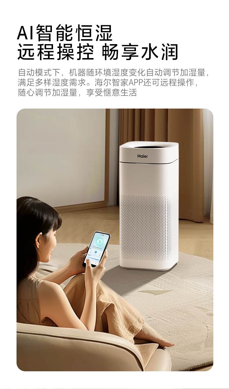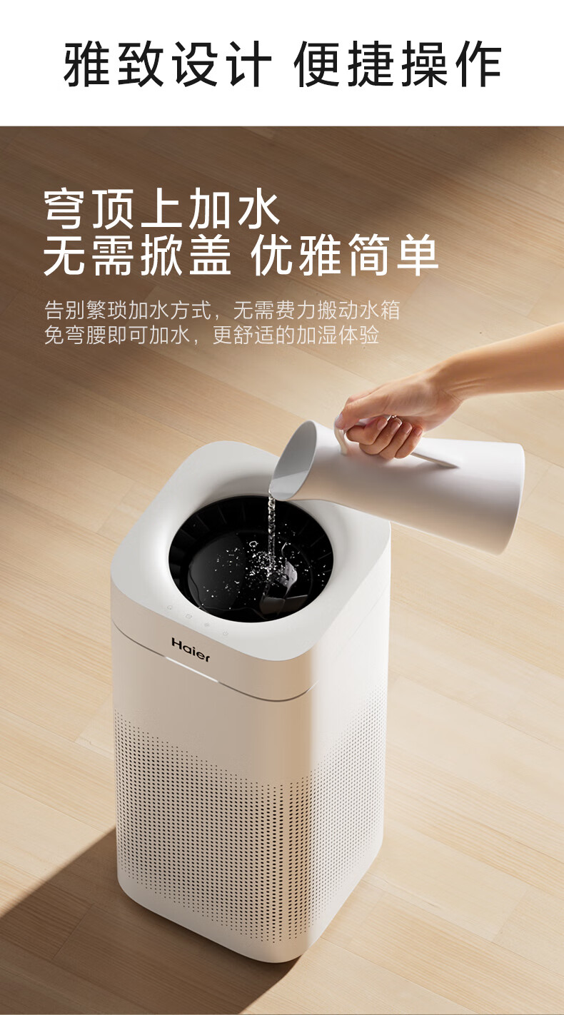 海尔无雾加湿器母婴级家用全水路电解水杀菌技术静音客厅轻音孕妇负离子大容量超清大屏SZ1200-H1U1