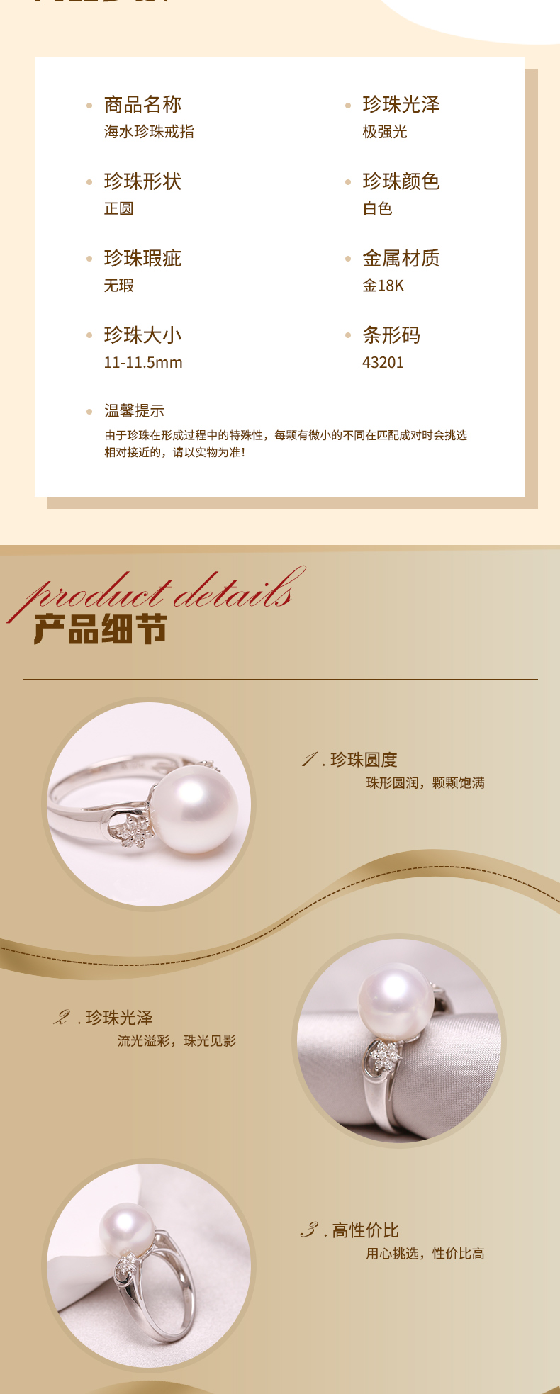 美裕 金18K海水珍珠戒指 南洋珠11-11.5mm白 43201