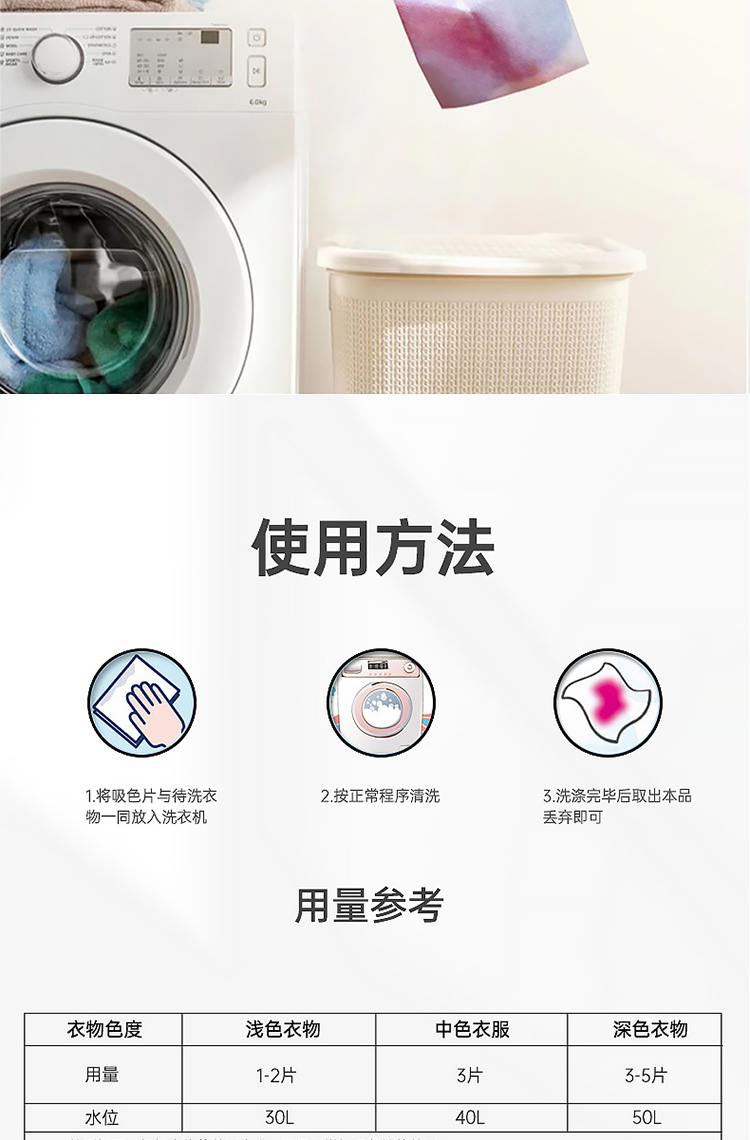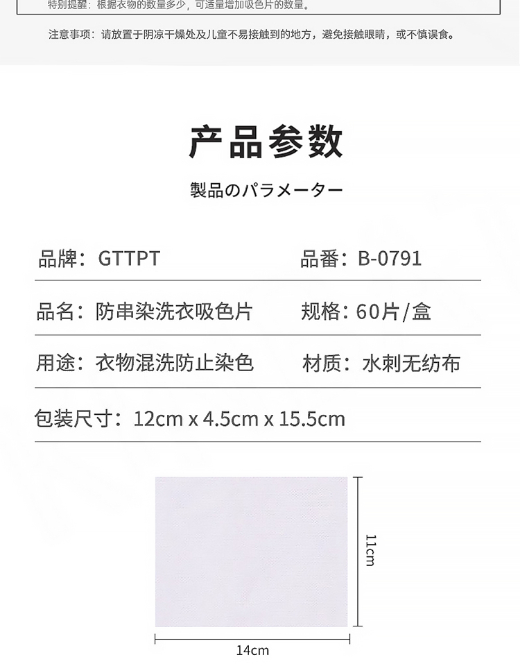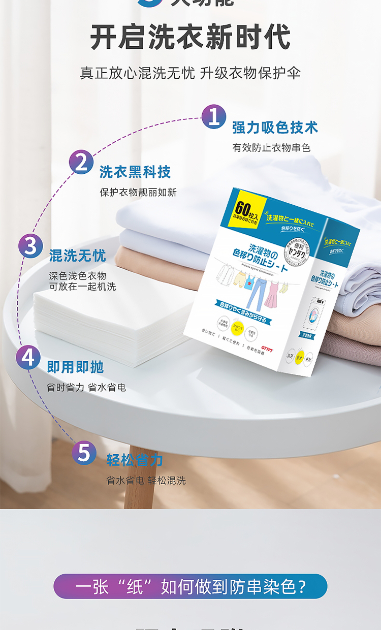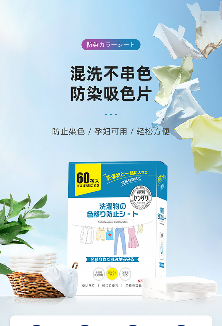 【混洗不串色】GTTPT格帕迪 防串染色洗衣吸色片 即用即抛轻松省力 60片/盒