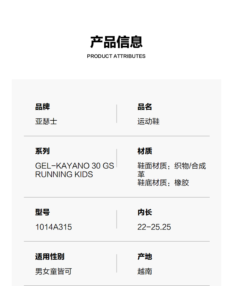 ASICS亚瑟士童鞋2024稳定支撑跑鞋缓震轻量运动鞋GEL-KAYANO 30