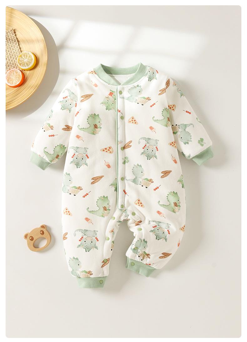 婴儿夹棉连体衣秋冬季女宝宝加棉爬爬服新生儿衣服a类薄棉哈衣