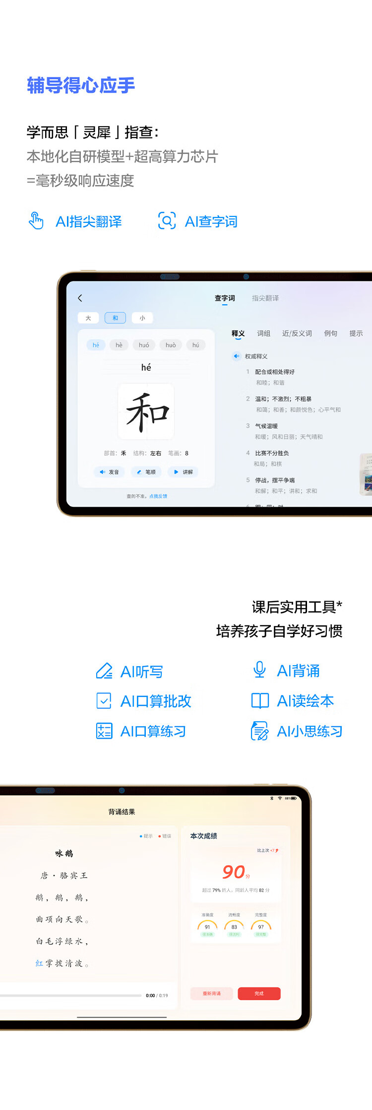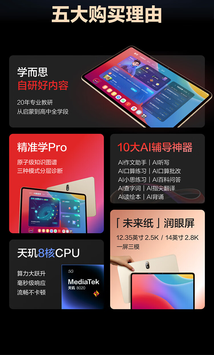 学而思二代旗舰 学习机 精准学Pro 九章大模型 中学小学 学生 学习平板 家教机 护眼学习机 AI学习机 12.35英寸(8+256G)/ 14英寸(12+512G)