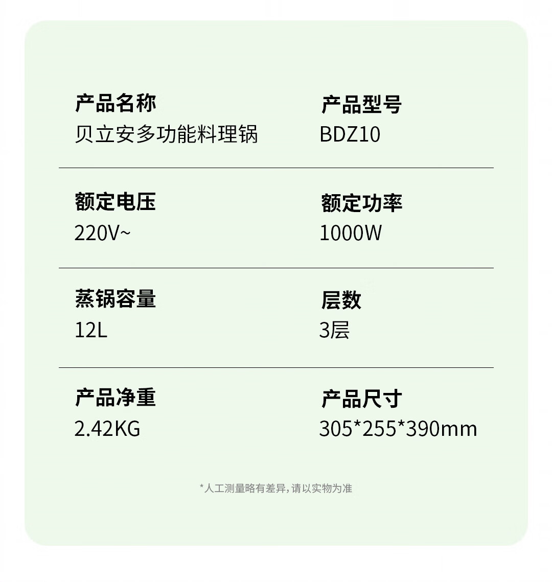 海尔智家旗下 贝立安电蒸锅BDZ10
