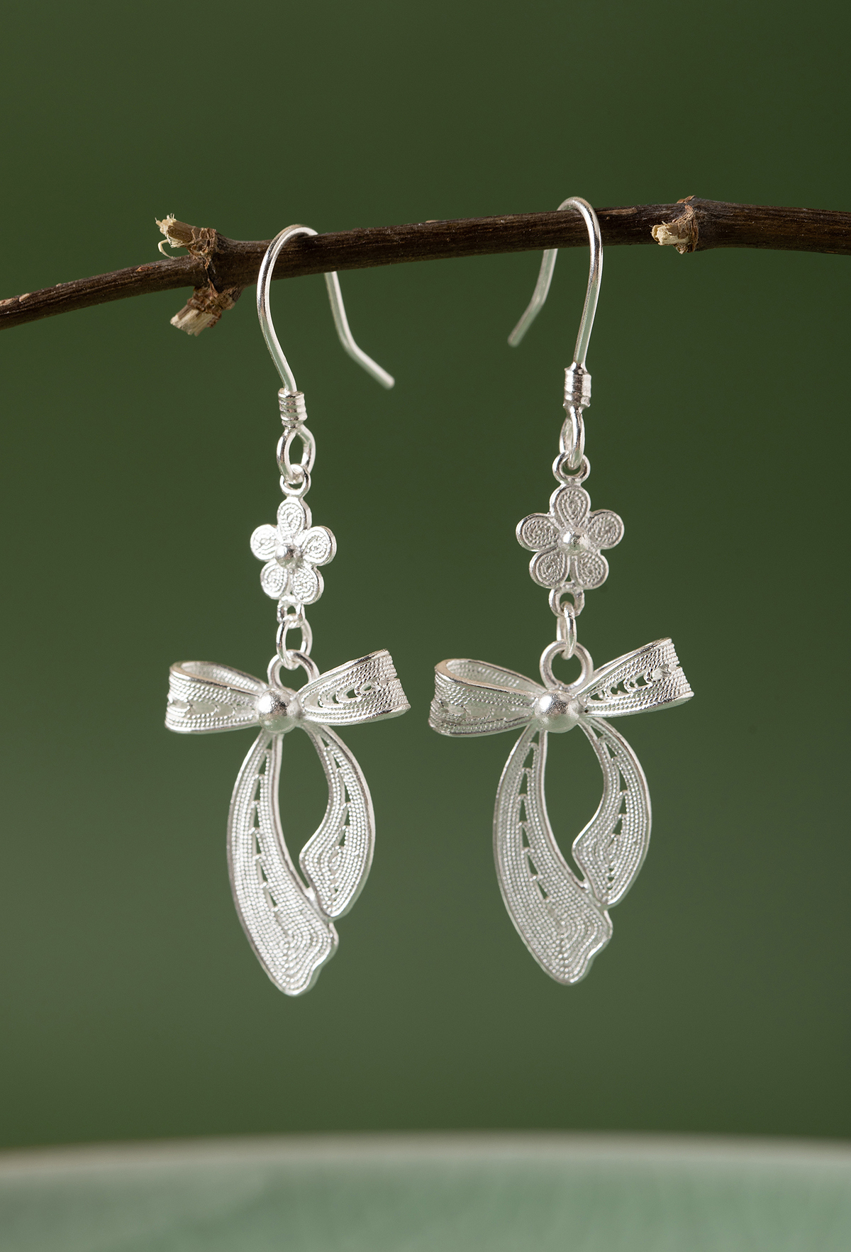 【林栖设计小店】蝴蝶结耳饰银925花丝银器复古优雅原创2025秋冬新款配饰2954159